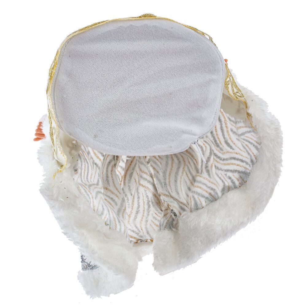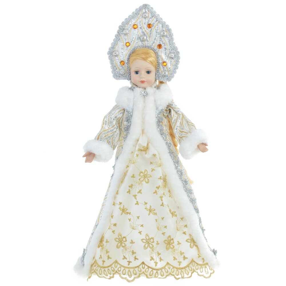 Снегурочка в роскошном белом наряде с меховой отделкой и кокошнике будет прекрасным подарком к Новому году. Ее можно поставить под елку, а так же использовать как милый подарок.