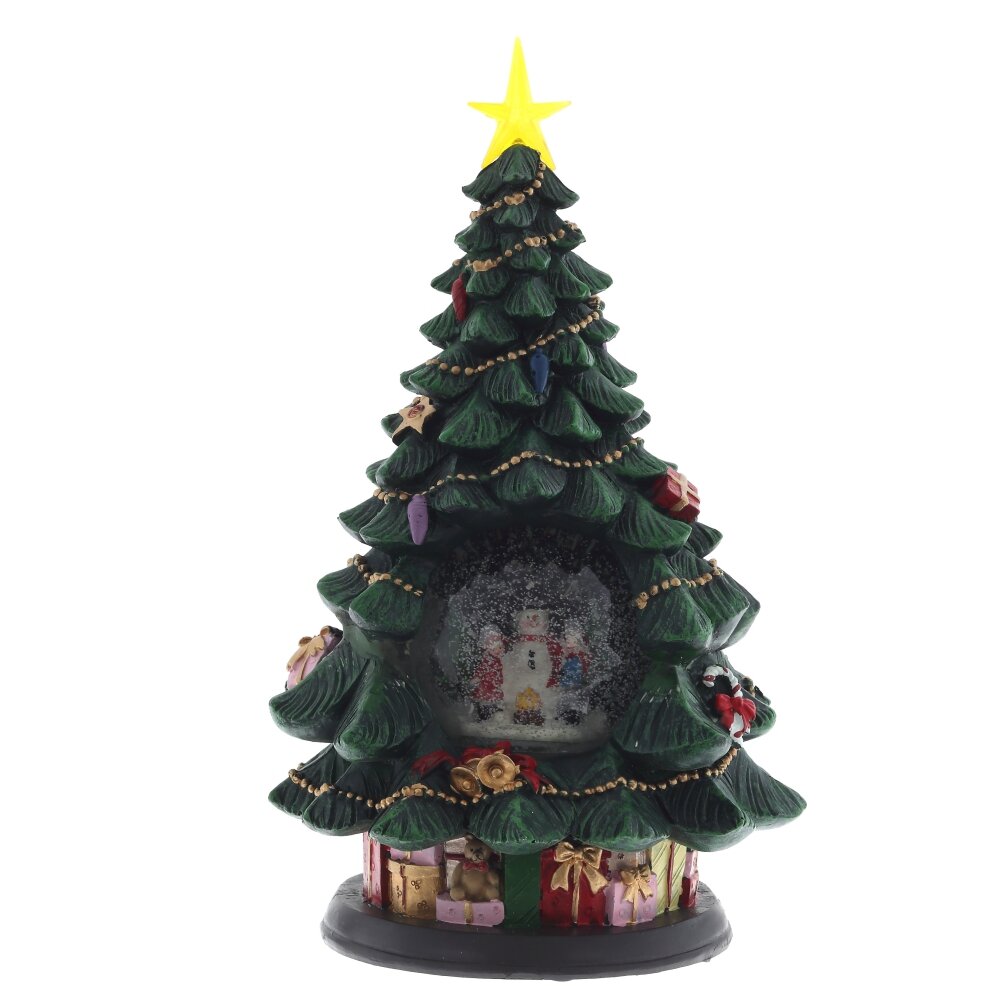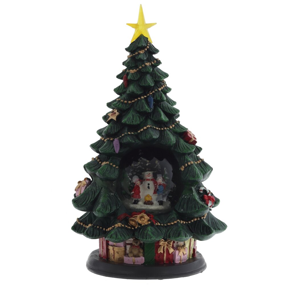 Декоративная фигурка в стеклянном шаре "Елка и Снеговик" - удивительное сочетание праздничного настроения и красоты. Внутри большой рождественской ели из полистоуна украшенной сверкающими деталями и яркой звездой, поставлен стеклянный шар диаметром 10 см. Внутри шара представлена сцена со Снеговиком и детьми. Шар заполнен глицериновой жидкостью с мелким белым глиттером, имитирующим снег. Рычаг на дне активирует цветную подсветку, вьюгу и восемь гармоничных новогодних мелодий. Сувенир имеет два режима работы - с музыкой и без нее. Для работы необходимо три батарейки типа АА, которые не включены в комплект. Погрузитесь в атмосферу чудес и волшебства с этим загадочным сувениром! Обратите внимание на температурный режим отгрузки выше 0°С