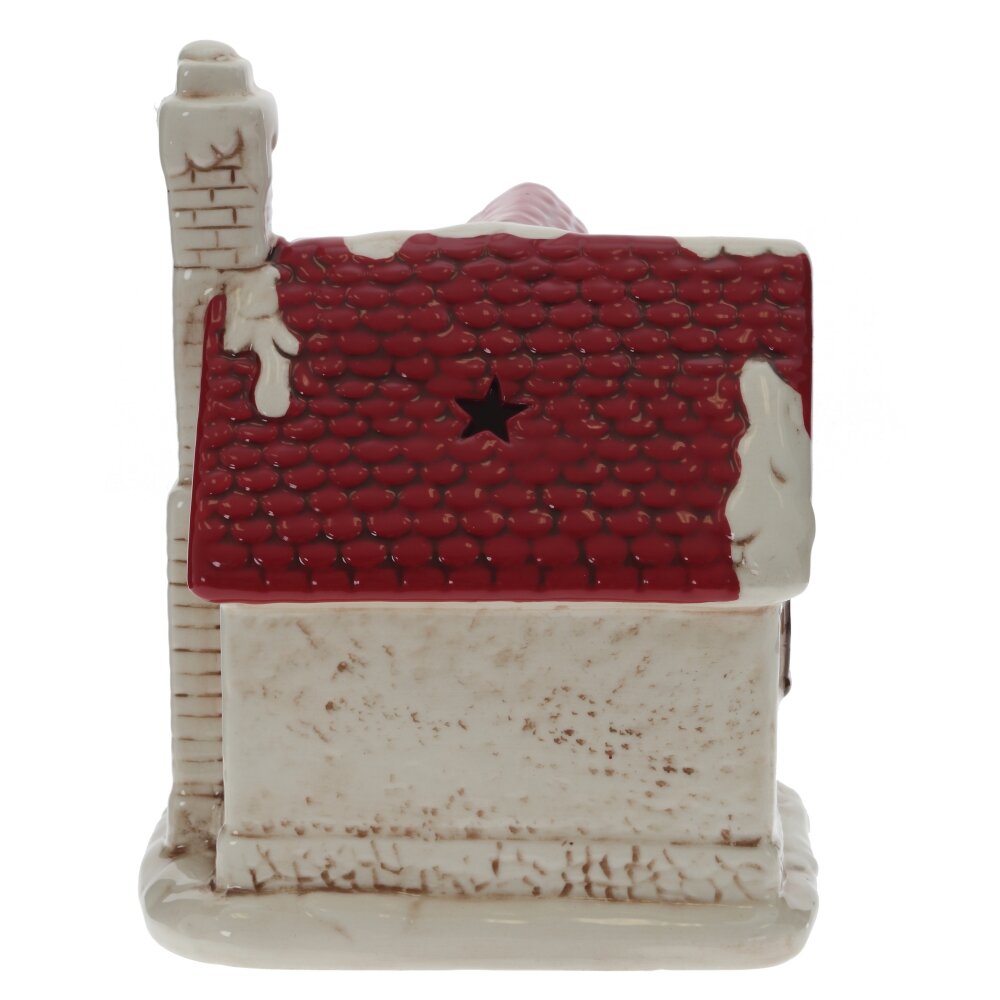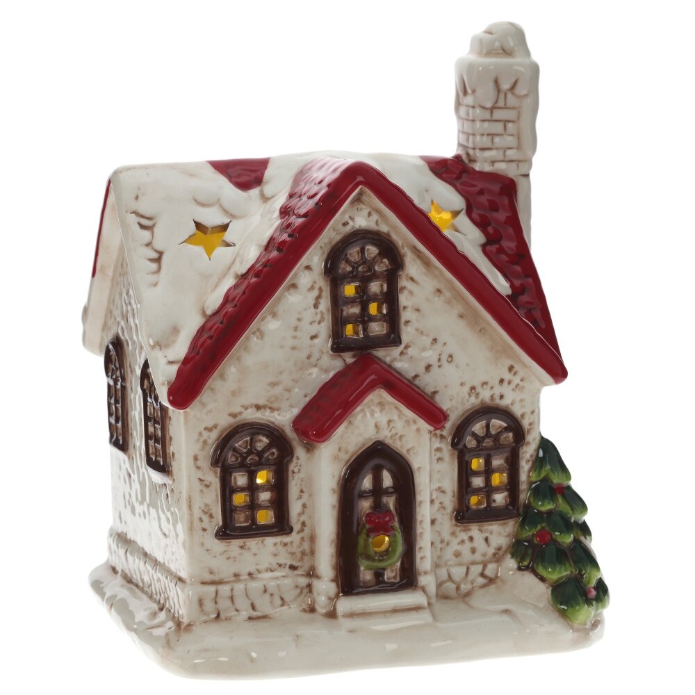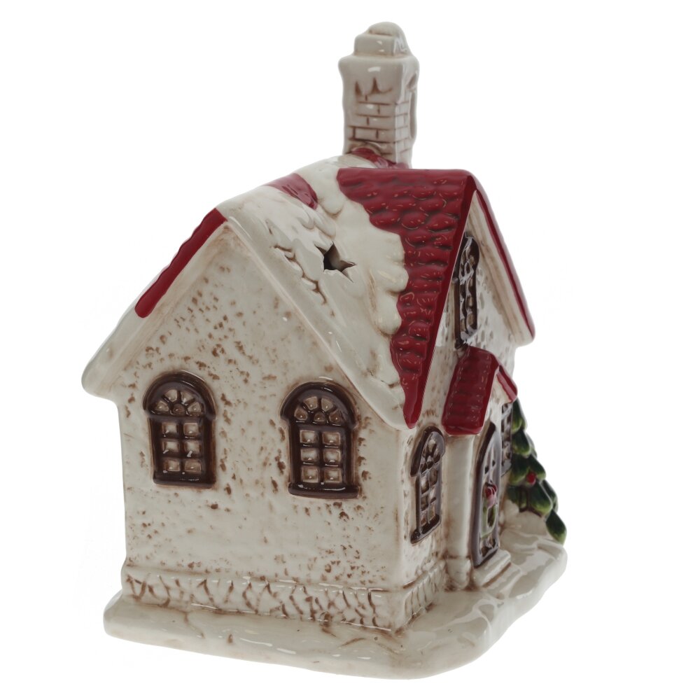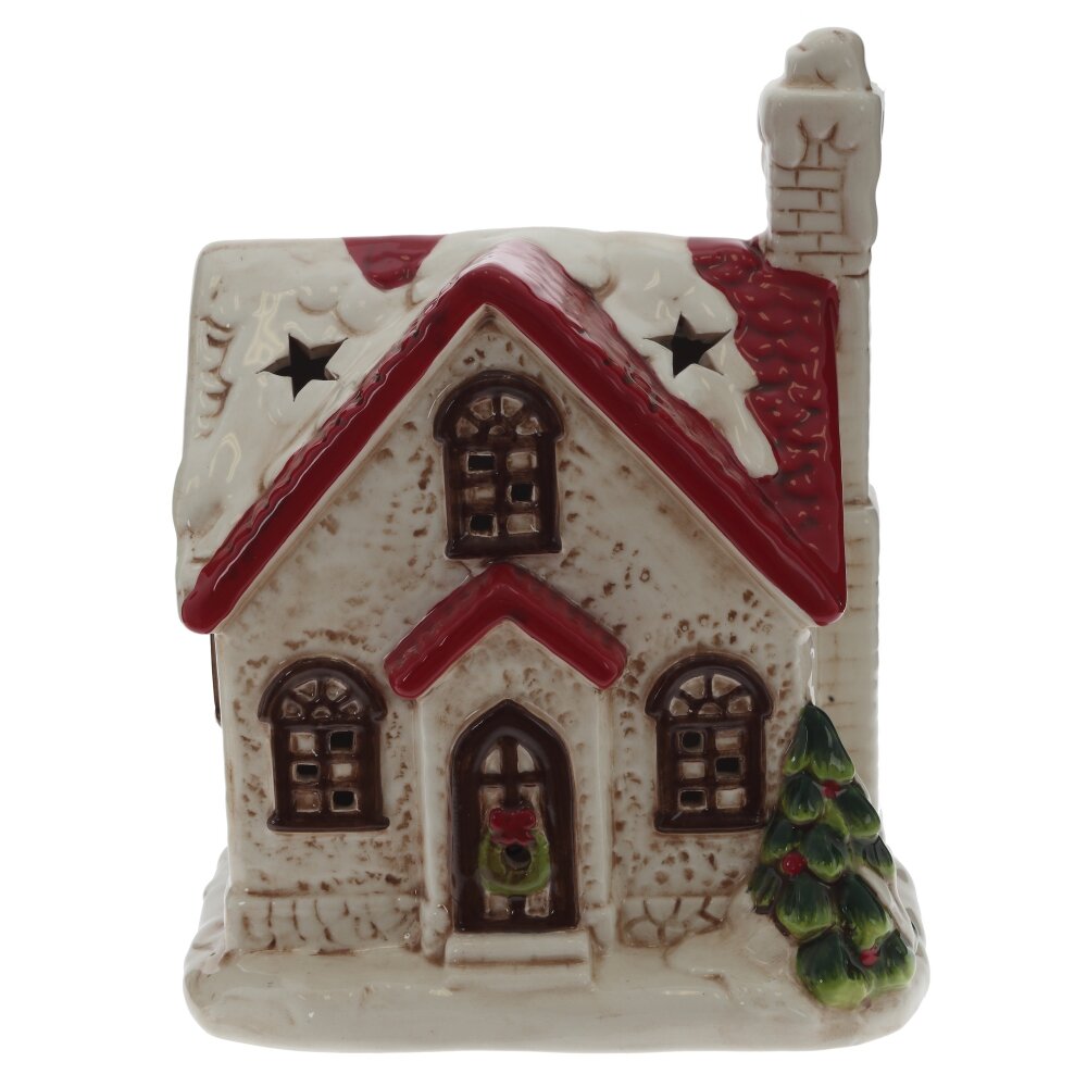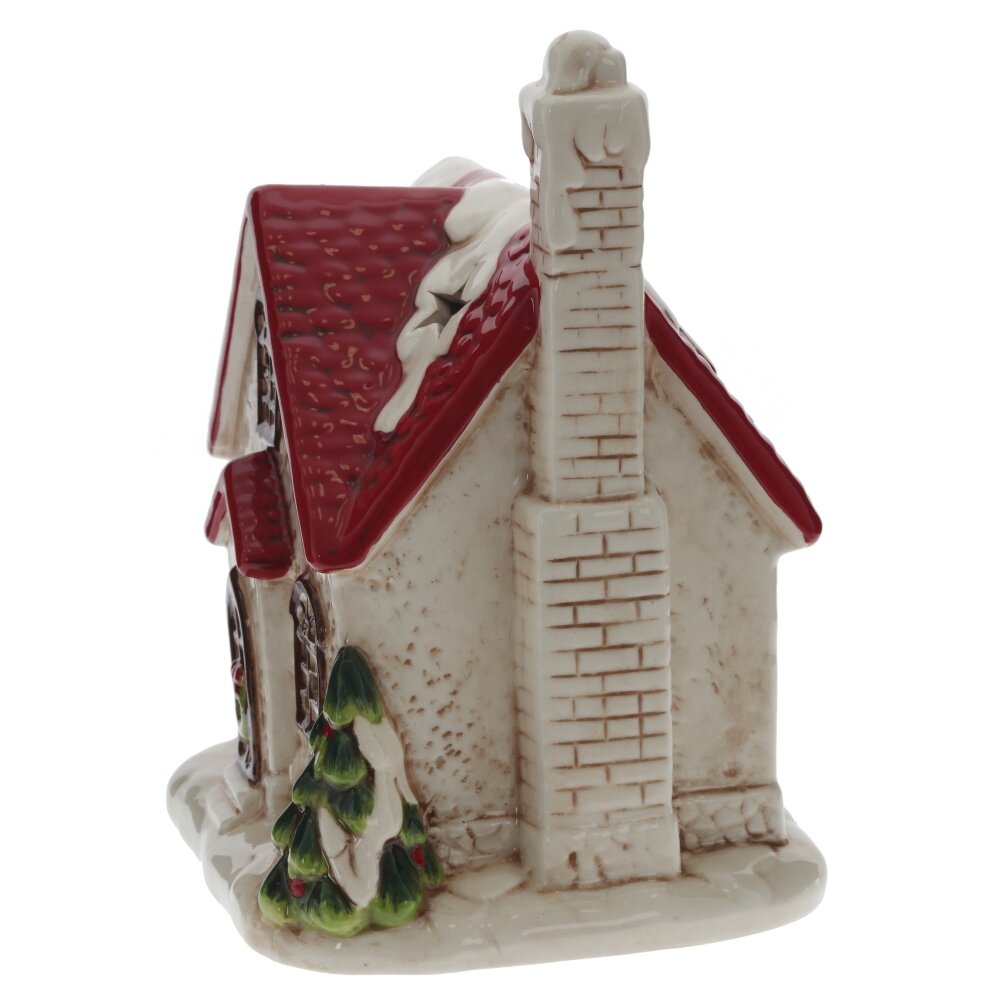 Подсвечник декоративный в виде праздничного домика изготовлен из керамики, в картонной упаковке