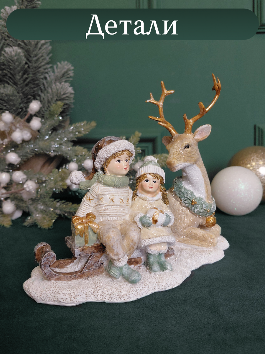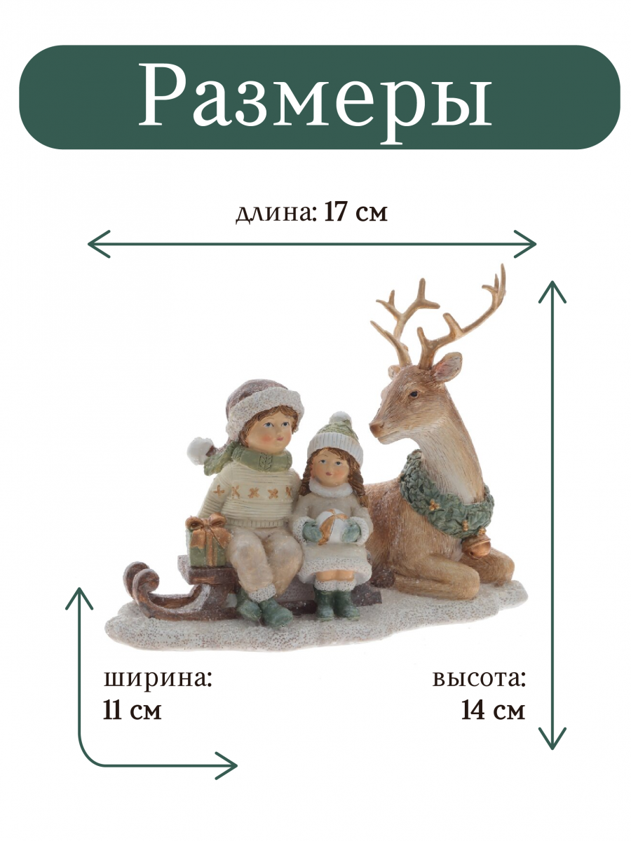 Фигурка декоративная "Олень и дети", L17 W11 H14 см