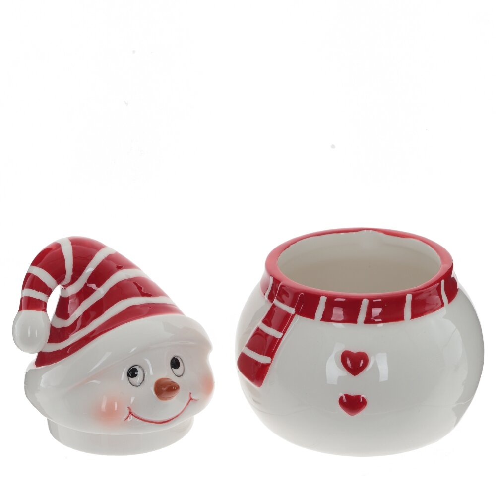 Керамическая емкость выполнена в виде снеговика с милой мордашкой. Она украсит новогоднюю сервировку стола и непременно поднимет настроение гостям.
