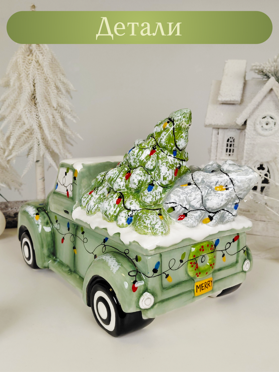Керамическая конфетница в виде ретро-машины с ёлочкой в кузове — новогодний декор с характером.Добавьте волшебства в ваш дом с очаровательной керамической конфетницей, выполненной в виде ретро-автомобиля, в кузове которого едет пушистая новогодняя ёлочка. Эта декоративная и одновременно функциональная вещица создаёт настоящую праздничную атмосферу и станет неотъемлемой частью зимнего интерьера.