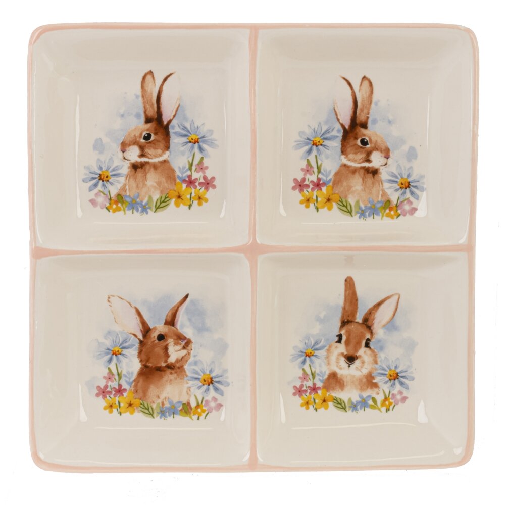Менажница — это элегантный и практичный аксессуар, который станет незаменимым элементом вашего праздничного стола. Изготовленная из фарфора, она отличается прочностью и утонченным дизайном. Белый цвет в сочетании с изящным бежевым пасхальным рисунком создает атмосферу весеннего праздника и радости. Четыре секции квадратной формы позволяют удобно разместить разнообразные закуски, сладости или фрукты, делая подачу блюд стильной и аккуратной. Размеры 18 см в длину и ширину, а также 2,5 см в высоту делают менажницу компактной и удобной для любого стола. Она прекрасно сочетается с другими пасхальными аксессуарами, создавая гармоничный ансамбль. Используйте менажницу как самостоятельный элемент декора или в сочетании с другими предметами, чтобы подчеркнуть атмосферу праздника. Подарите себе и своим близким радость весеннего праздника с этим изысканным и функциональным аксессуаром!