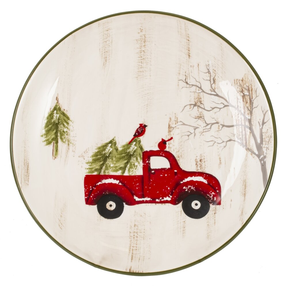 Керамическая тарелка с ярким новогодним дизайном в виде красной машины, везущей пушистую зелёную ёлку — это не просто посуда, а элемент праздничного декора, способный создать волшебное настроение. Стильный сюжет в традиционных рождественских цветах — красном, зелёном и белом — напоминает о семейных традициях, подготовке к празднику и тепле домашнего очага. Тарелка выполнена из прочной керамики, устойчива к царапинам и перепадам температур, подходит для подачи закусок, десертов или выпечки. Благодаря своему оригинальному оформлению она станет украшением любого праздничного стола и отличным подарком на Новый год или Рождество.