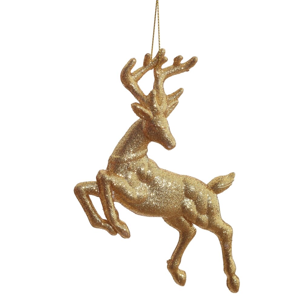 Декоративное подвесное изделие "Олень" — это утонченная и изящная фигурка, выполненная из полимерных материалов. Он покрыт искрящимся золотым глиттером, придающим изделию волшебный вид. Олень отлично смотрится как на новогодней елке, так и на окне, наполняя ваше пространство атмосферой праздника и сказки. Этот элемент декора станет шикарным дополнением к любому интерьеру, создавая уют и положительные эмоции для всей семьи.