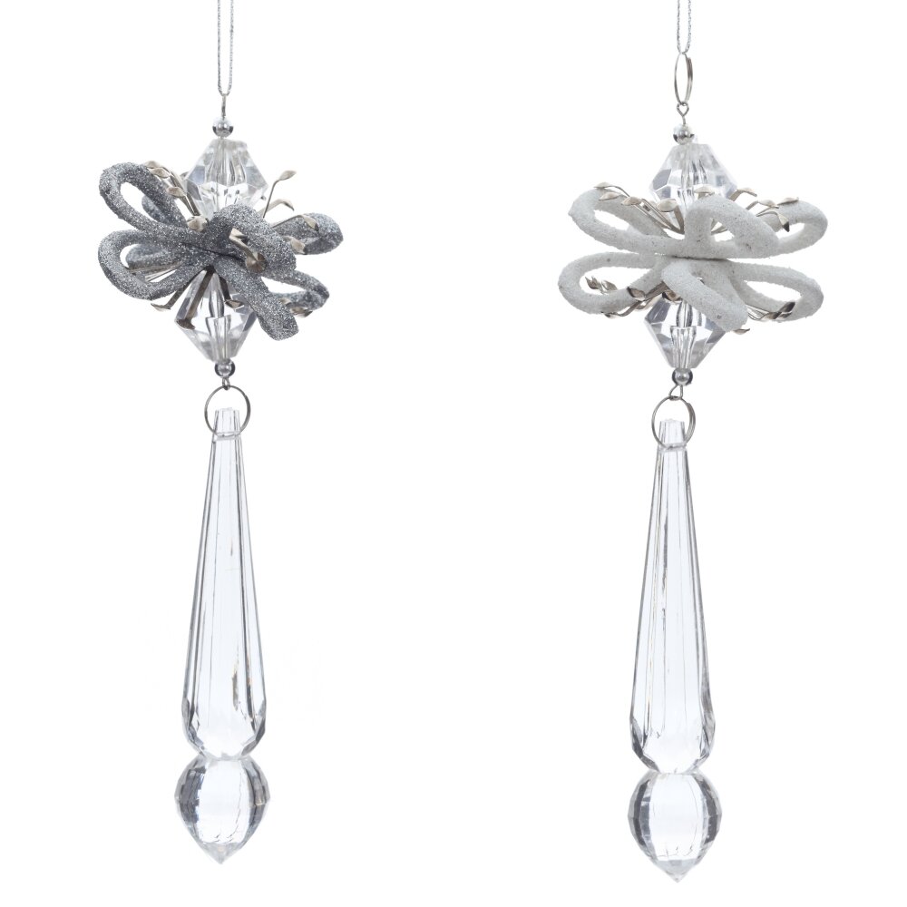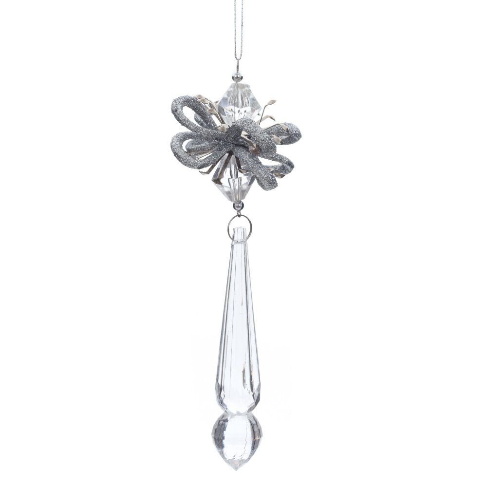 Эта элегантная подвеска станет акцентом вашей елки. Бант в виде цветка дополнен "хрустальными кристаллами", которые сверкают при любом освещении, а длинная свисающая капля придает изделию особый шик. Это украшение, добавит вашему интерьеру изысканности в новогодний период.
