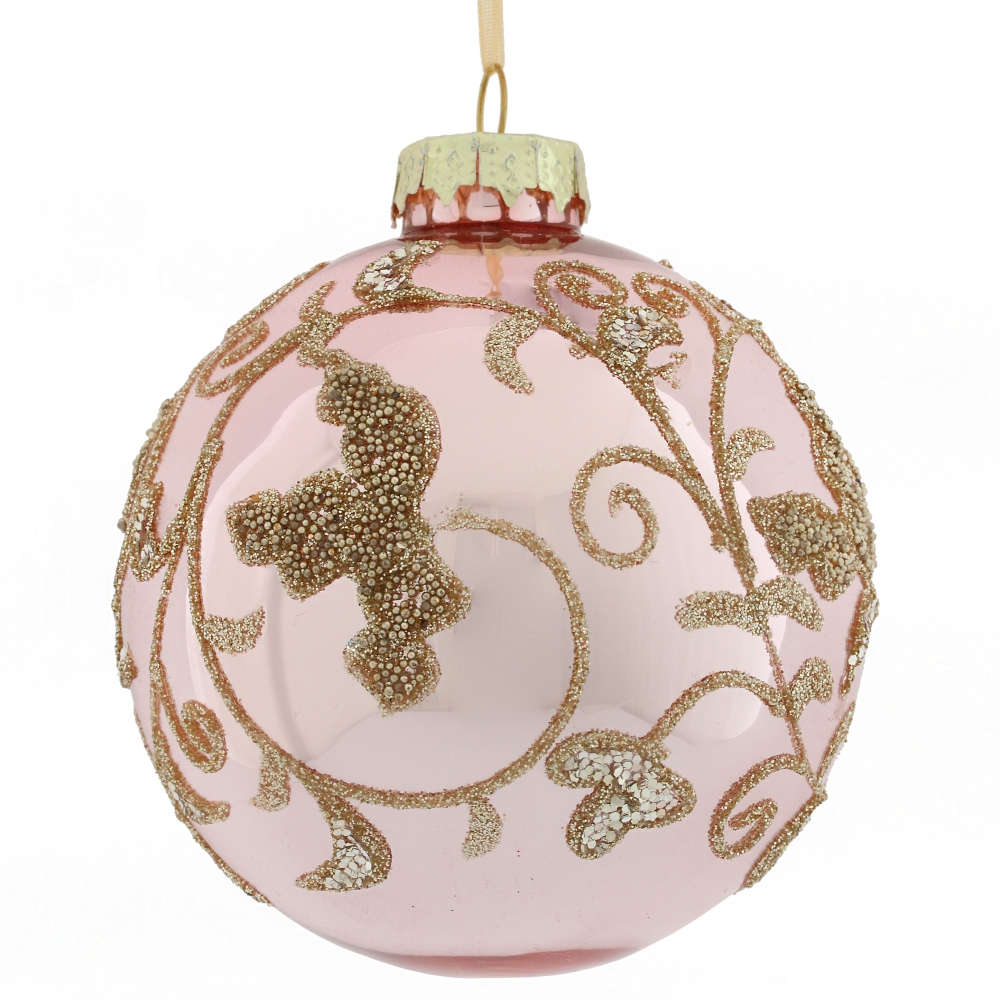 Стеклянный шар выполнен в традиционном праздничном стиле. Глянцевая поверхность и изящные узоры придают этому шару особую изысканность.