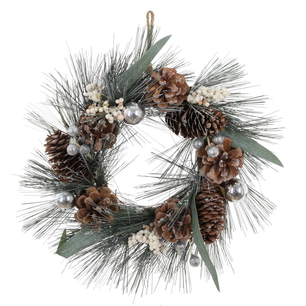 Этот великолепный венок диаметром 26 см привнесет в ваш интерьер атмосферу зимней сказки. Его цветовая гамма создает впечатление морозной красоты, напоминая о холодных, сверкающих снежинках и ясном зимнем небе. Венок удивительно гармонично соединяет натуральные материалы, что делает его не только стильным, но и экологически чистым декором. Он легко впишется в любой интерьер — от классического до современного, добавляя нотки изысканности и оригинальности.