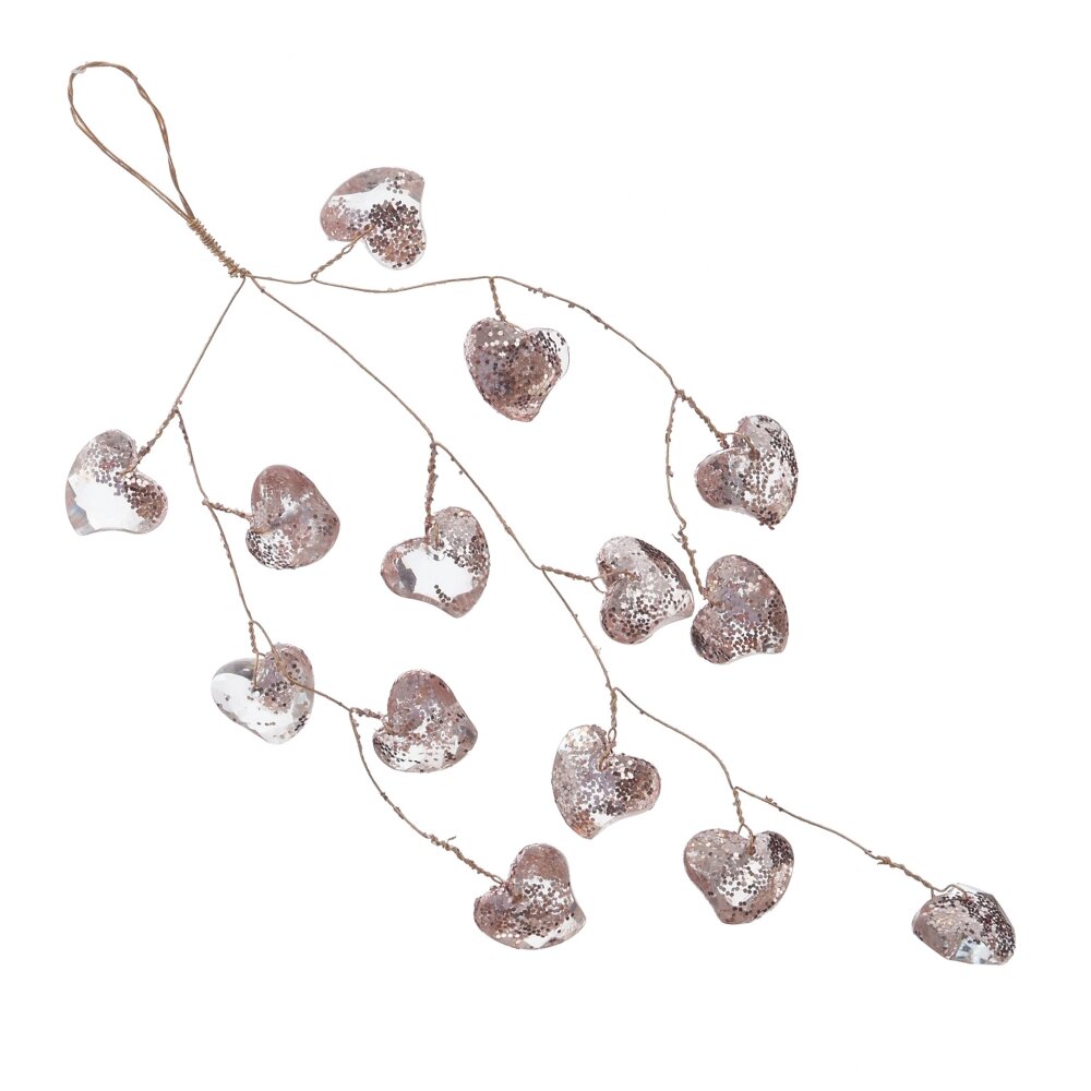 Утонченная веточка из золотистой проволоки с "хрустальными" бусинами-сердечками с глиттером в нежно-розовом оттенке внесет волшебство в ваш праздничный интерьер. Петелька для подвешивания делает ее удобным элементом декора. Она прекрасно впишется в любой стиль оформления, создавая атмосферу праздничной сказки.