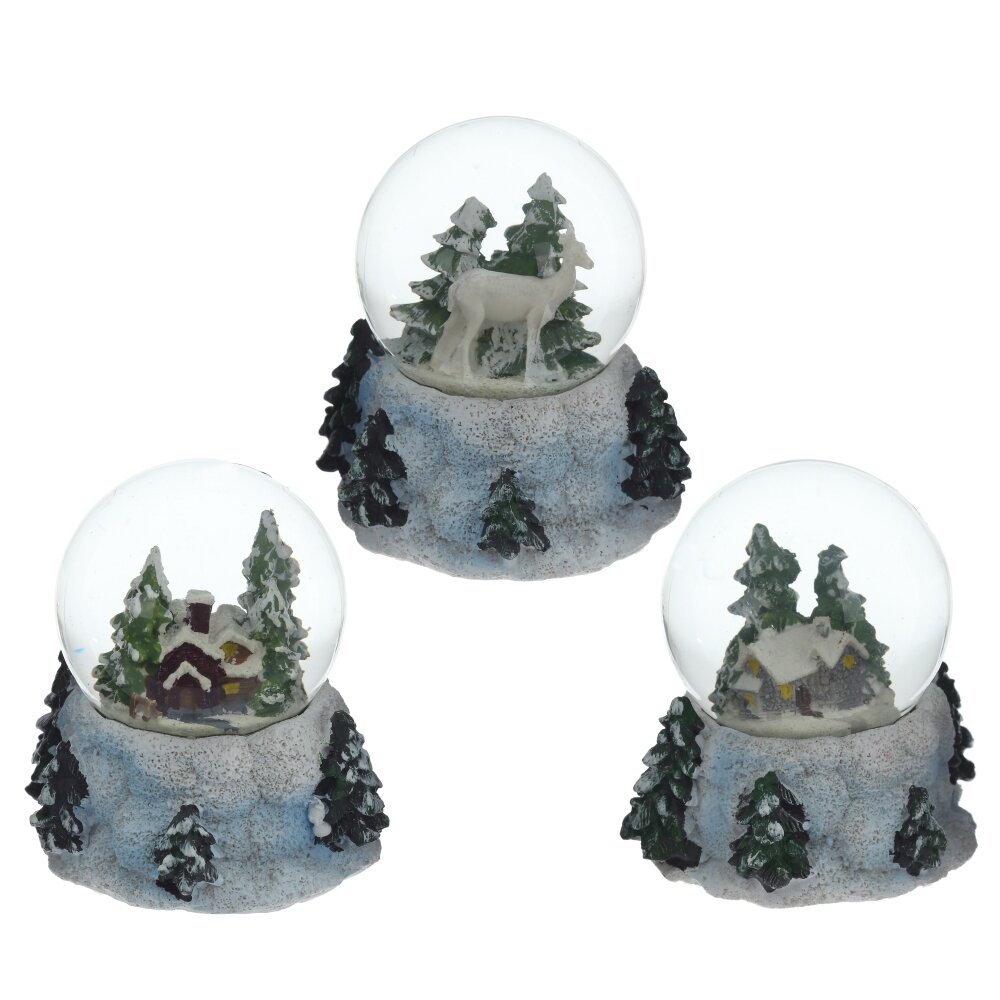 Фигурка декор в стекл шаре "Домик/Олень", D 6.5 см, L9 W8 H9 см, 3в.