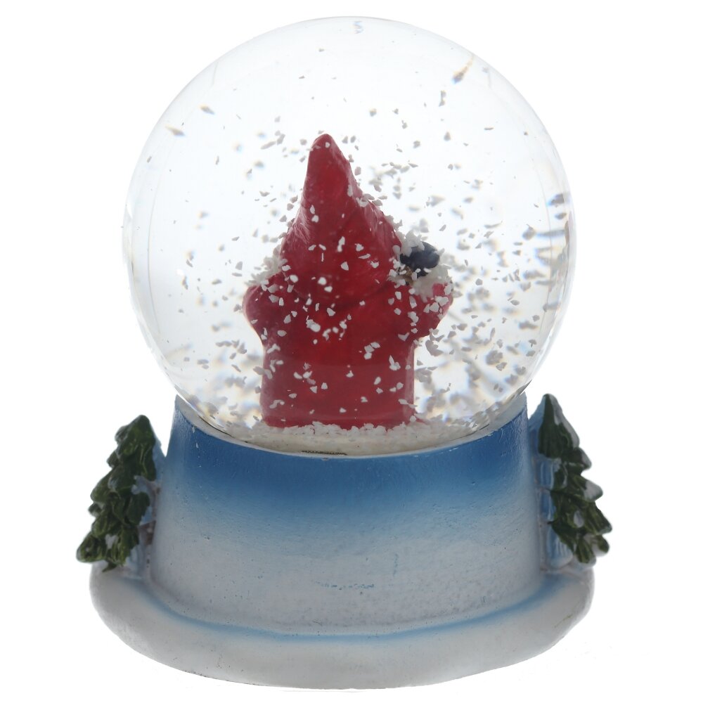Новогодний снежный шар с фигуркой Гнома внутри подарит вам праздничное настроение и радость. Стеклянный шар, диаметром 4,5 см, заполнен водой с мелкими белыми хлопьями, имитурующими вьюгу при встряхивании. Фигурки и подставка изготовлены из полистоуна. Внутри фигурка лесного гнома в красном колпаке. Изделие станет прекрасным подарком для родных и близких. Представлено в двух вариантах. Внимание: при длительном нахождении в минусовой температуре возможно образование льда, который сместит фигурки и повредит шар. Наличие воздушной прослойки внутри водяного шара является технической необходимостью производства.