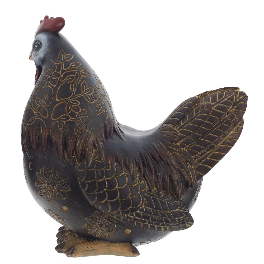 Декоративная фигурка Курица станет ярким акцентом пасхального и повседневного интерьера. Изготовлена из прочных полимерных материалов, устойчивых к повреждениям и выцветанию. Фигурка выполнена в виде объемной курочки в тёмно-коричневых и золотистых тонах с тщательно прорисованными перьями, цветочным орнаментом и выразительным гребешком. Благодаря устойчивому основанию её удобно размещать на полке, подоконнике, каминной полке или пасхальном столе. Подходит для украшения кухни, дачи, загородного дома, создания праздничных композиций с яйцами, свечами и зеленью. Отличный подарок к Пасхе и просто милый элемент домашнего декора. Петушка можно использовать в качестве садовой фигуры, но не стоит оставлять его под дождем/снегом и прямыми солнечными лучами. Подойдёт в подарок на Пасху, новоселье или просто как уютный элемент декора, создающий атмосферу тепла и семейного уюта.