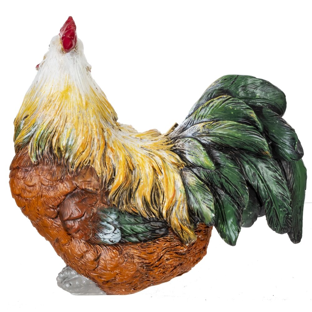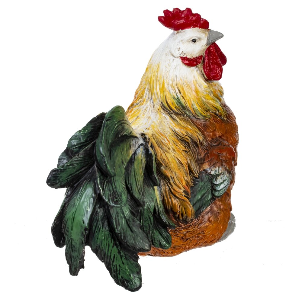Декоративная фигурка в виде петуха это настоящее произведение искусства, которое станет ярким акцентом пасхального интерьера и создаст в доме атмосферу уюта и весеннего праздника. Фигурка пасхальная имеет размеры: длина 13 см, ширина 8 см и высота 11,5 см. Изделие изготовлено из прочных полимерных материалов устойчивых к выцветанию и мелким царапинам. Пасхальная фигурка выполнена с детальной проработкой фактуры перьев и натуральной окраской: тёплые рыже-золотистые тона гармонично сочетаются с зелёными и серыми оттенками хвоста. Фигурка интерьерная идеально подойдёт для пасхального декора, оформления праздничного стола, подоконника или кухонного уголка. Лёгкая, устойчивая и долговечная, она сохраняет цвет и форму со временем. Отличный вариант небольшого подарка к Пасхе, украшения интерьера в деревенском и кантри-стиле или садового декора. Оригинальный дизайн фигурки ни кого не оставит равнодушным. Пасхального петушка можно использовать каждый год на пасху, или подарить на 8 марта иди день рождения.