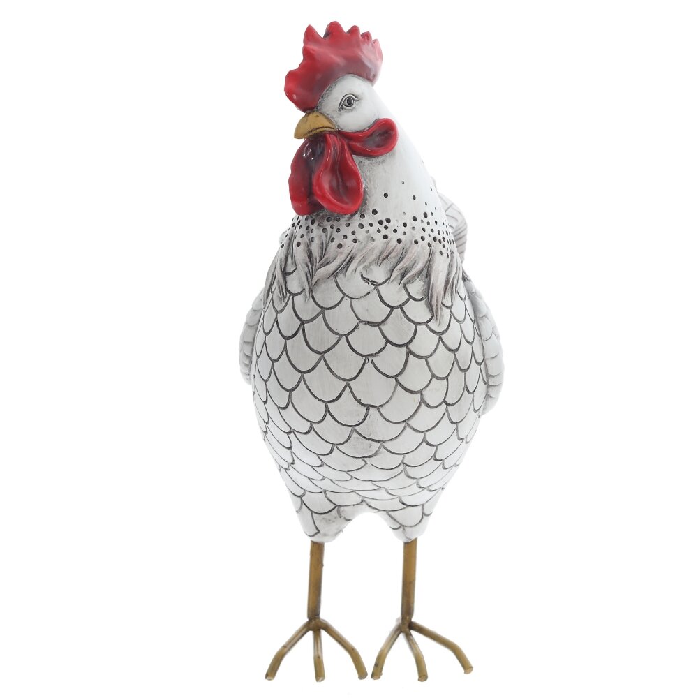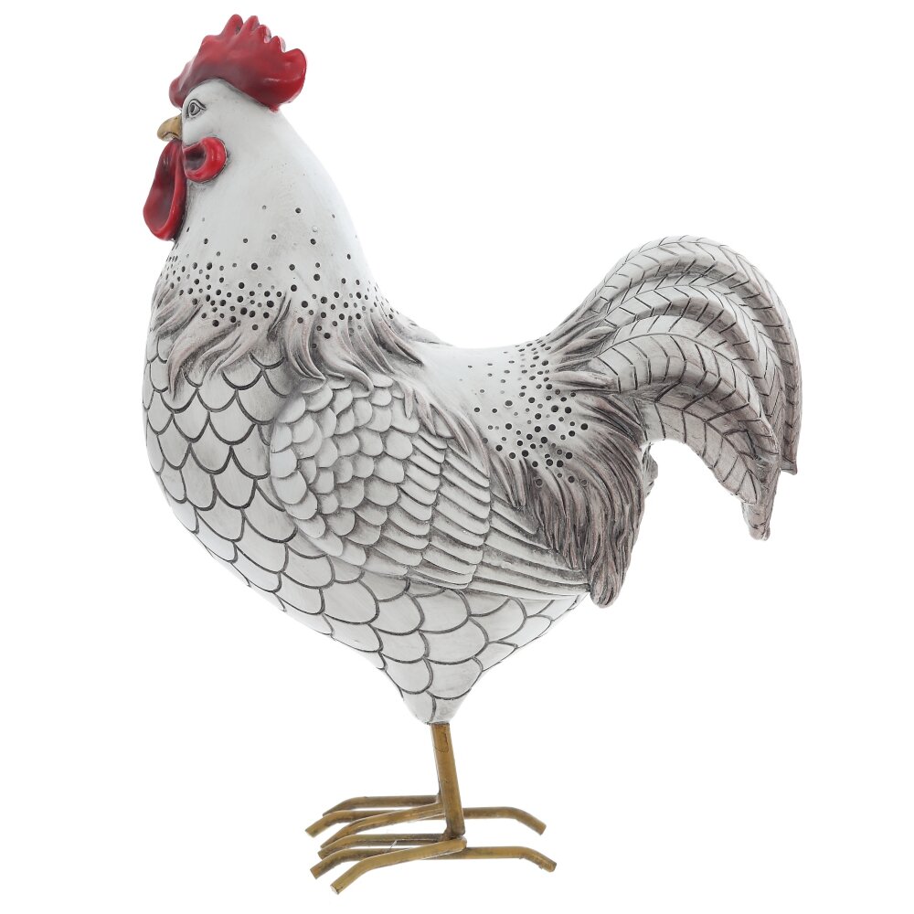 Декоративная фигурка в форме петуха станет ярким акцентом в весеннем и пасхальном оформлении дома. Фигура изготовлена из прочных полимерных материалов с детальной прорисовкой перьев и вырезным гребнем. Пасхальный петушок выполнен в белом цвете с серой затиркой и тенями, с элементами насыщенно-красного цвета. Металлические лапки придают изделию устойчивость и изящность, а сочетание спокойных серо-белых оттенков с контрастными деталями легко вписывается как в классический, так и в современный интерьер. Такой петух красиво смотрится на праздничном столе, подоконнике, каминной полке или в композиции с пасхальными яйцами и цветами. Петушка можно использовать в качестве садовой фигуры, но не стоит оставлять его под дождем/снегом и прямыми солнечными лучами. Подойдёт в подарок на Пасху, новоселье или просто как уютный элемент декора, создающий атмосферу тепла и семейного уюта.