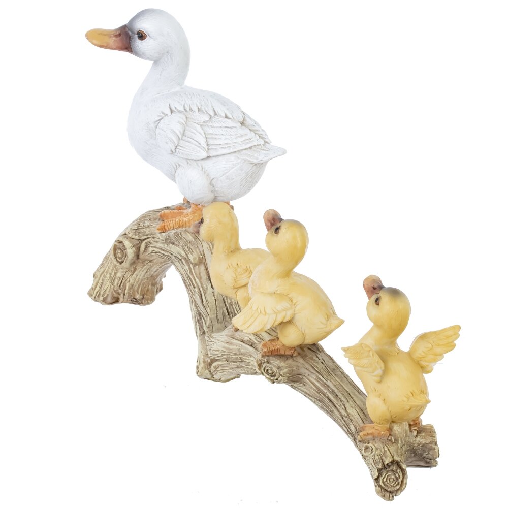 Эта очаровательная пасхальная декоративная фигурка изображающая Утиное семейство станет нежным украшением для дома принося весеннюю свежесть в преддверии светлого праздника Пасхи. Интерьерная фигурка имеет размеры: длина 24 см, ширина 7 см, высота 13,5 см. Изготовленная из прочных полимерных материалов фигурка долговечна, не выцветает и простая в уходе. На изящной ветви расположились заботливая белая мама утка и три очаровательных желтых утёнка, шагающие друг за другом. Тщательно прорисованные перья, лапки и фактура дерева создают эффект ручной работы и делают композицию по-настоящему живой. Фигурка выполнена из прочного полимерного материала, устойчива и легко очищается от пыли. Идеально подойдёт для пасхального стола, сервировки праздничных композиций, декора подоконника или детской комнаты. Добавит ощущение весны, уюта и семейного тепла в любой интерьер, станет милым подарком к Пасхе и другим праздникам, например 8 марта или день рождения.