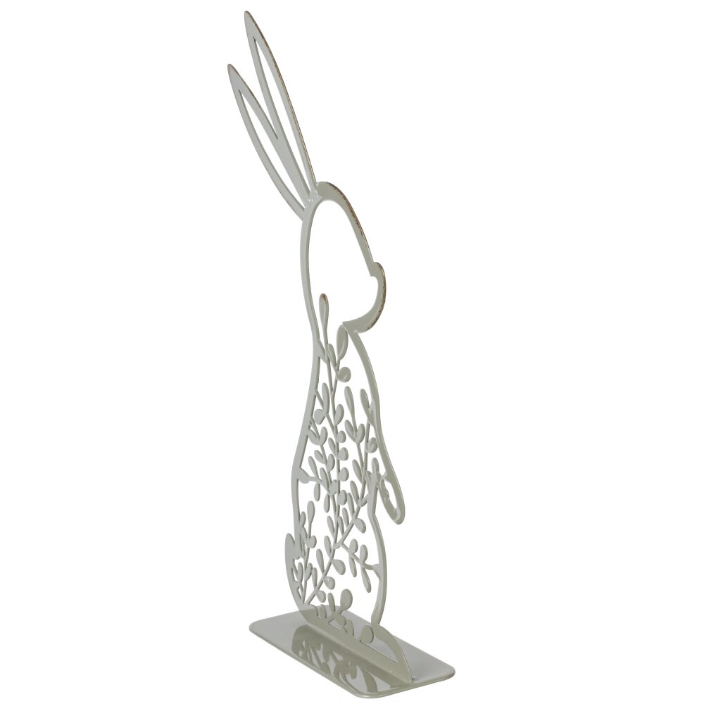 Декоративная фигурка «Заяц» – стильный пасхальный акцент для вашего интерьера. Силуэт зайчика выполнен из прочного металла и закреплён на устойчивой прямоугольной подставке. Тонкий изящный контур дополнен ажурным растительным орнаментом, что создаёт ощущение лёгкости и воздушности. Нейтральный светлый оттенок гармонично сочетается как с яркими пасхальными композициями, так и с лаконичным современным декором. Фигурку удобно размещать на подоконнике, каминной полке, сервировочном столе или в праздничной композиции с яйцами и свечами. Металл устойчив к деформации и легко очищается от пыли, поэтому украшение будет радовать вас не один сезон, создавая весеннее, тёплое и уютное настроение в доме.