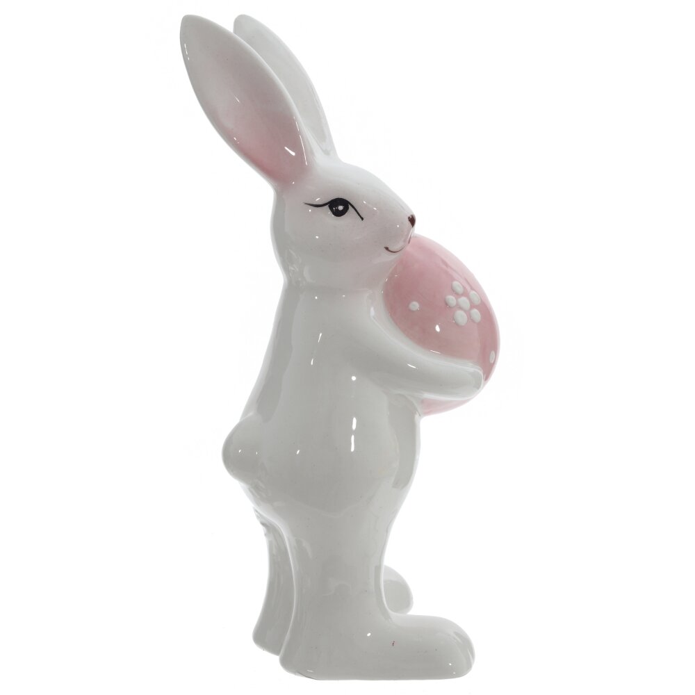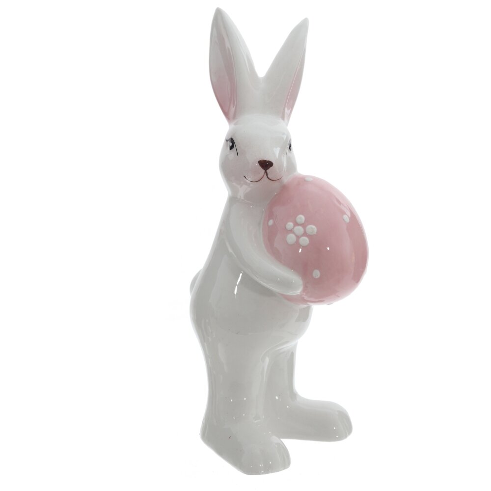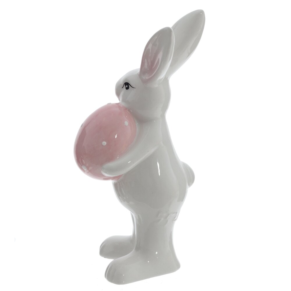 Декоративная пасхальная фигурка в виде Зайчика с розовым пасхальным яичком станет нежным акцентом вашего праздничного декора. Размер декоративной фигурки: высота 16 см, длина 6 см, ширина 8 см. Милый белый зайчонок из гладкой глянцевой керамики держит в лапках пасхальную крашенку в пастельных оттенках розового цвета с белым узором. Аккуратная ручная роспись мордочки и деталей придаёт изделию особое очарование и живое выражение. Фигурка гармонично смотрится на пасхальном столе, подоконнике, в композиции с корзинками и свечами, подходит для оформления детской комнаты. Керамика легко очищается от пыли, не выгорает и надолго сохраняет яркость красок. Идеальный небольшой сувенир к Пасхе для родных, друзей или коллег, который создаст атмосферу уюта и весеннего настроения в любом интерьере. Пасхальный кролик — идеальный подарок не только для детей, но и для взрослых, которые ценят изысканный дизайн и качественные вещи.