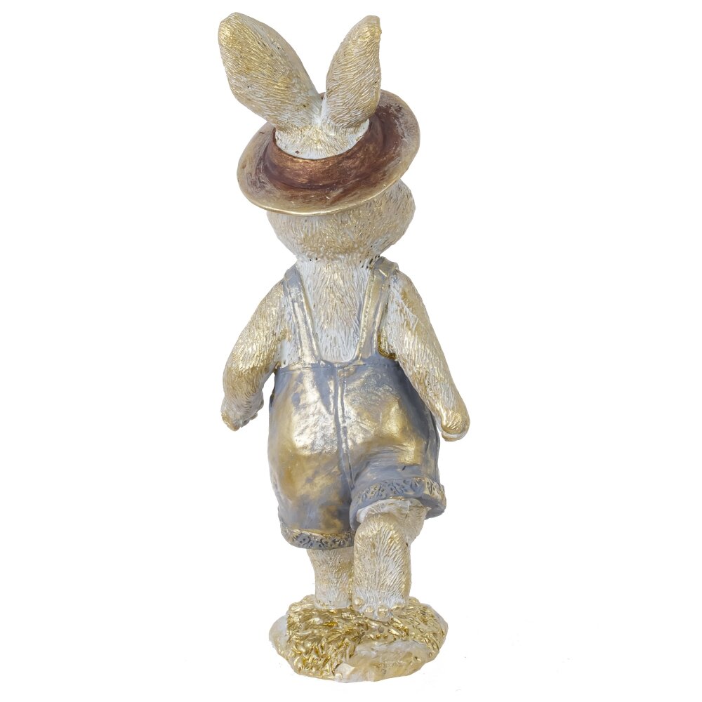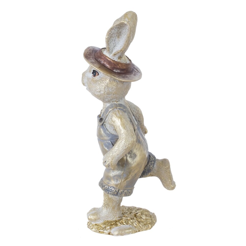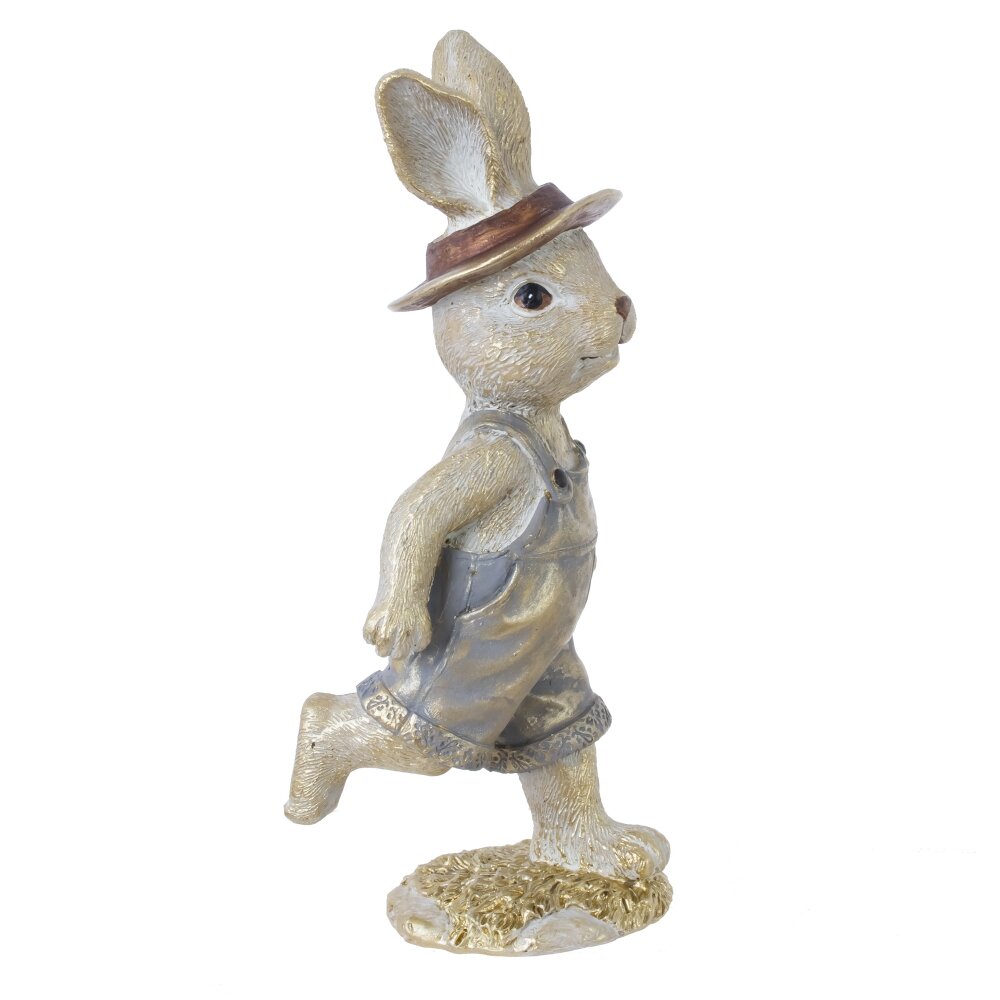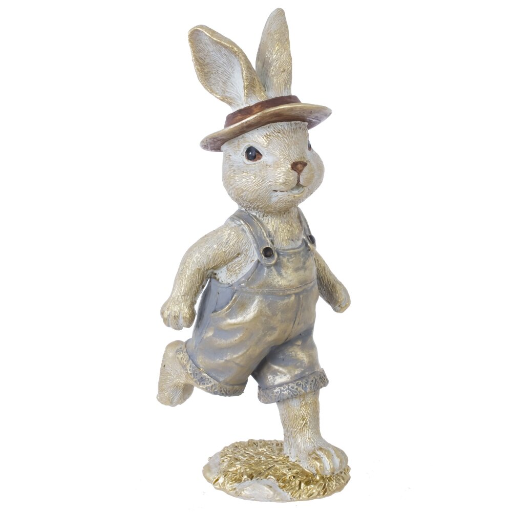 Декоративная фигурка «Заяц» станет милым акцентом пасхального декора и уютным украшением интерьера в любое время года. Забавный зайчонок выполнен из прочных полимерных материалов, детально проработан: фактура «шерсти», выразительные глазки, аккуратный носик. Заяц одет в стильные короткие штанишки-комбинезон и шляпу, стоит на одной лапке в динамичной позе, создавая ощущение движения и весеннего настроения. Фигурка гармонично смотрится на полке, каминной полке, подоконнике или в композиции с пасхальными яйцами и цветами. Отличный вариант для подарка и праздничного оформления дома.