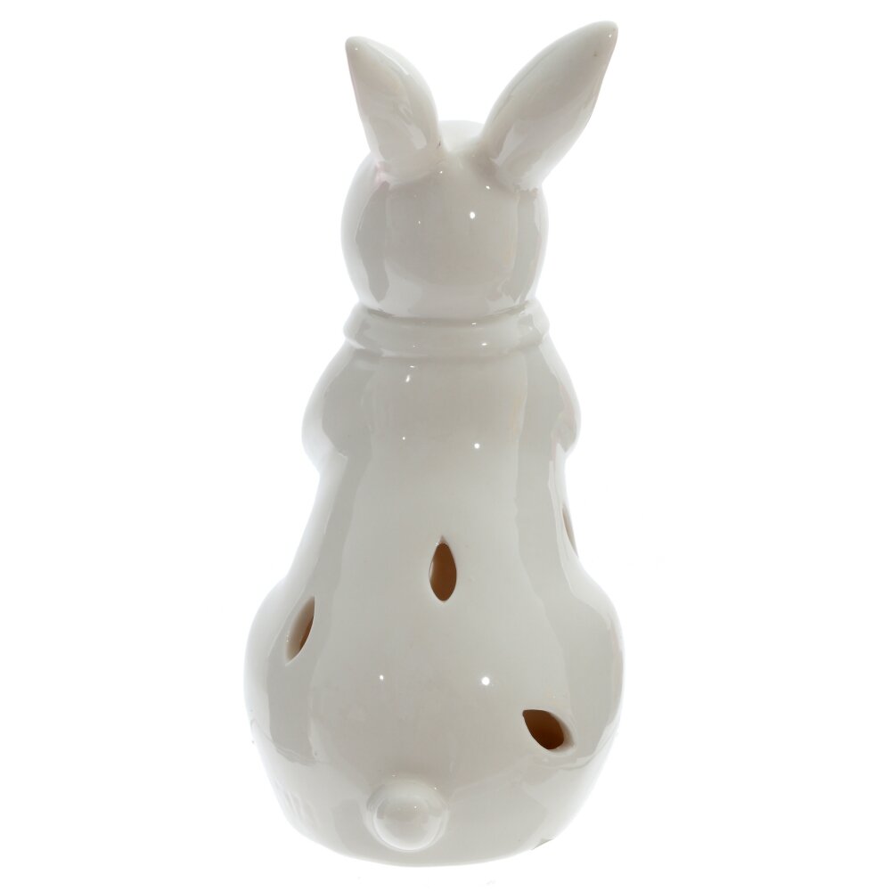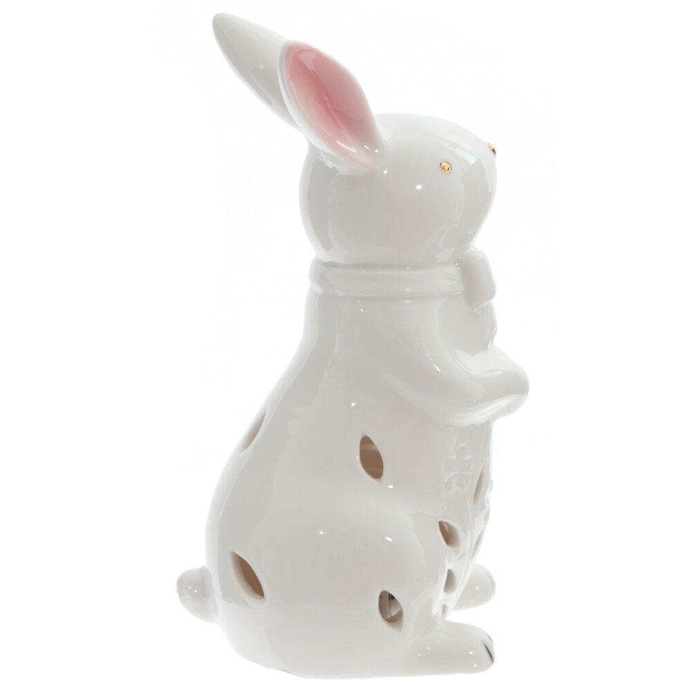 Декоративная фигурка в форме зайчика с подсветкой – стильный пасхальный акцент для вашего дома. Размер пасхальной фигурки выполненной из фарфора: высота 15,5 см, длина 7 см, ширина 8 см. Нежный белый фарфор с глянцевой поверхностью, изящный бантик на шее и аккуратные золотистые детали придают изделию праздничный, утончённый вид. Внизу фигурки выполнены ажурные прорези в виде листьев и цветов, сквозь которые мягко пробивается тёплый свет встроенной подсветки. Подсветка работает от 3 батареек типа LR44 (батарейки не прилагаются). Подсветка безопасна и удобна в использовании, фигурка не нагревается от нее и не выгорает. Благодаря компактному размеру фигурка отлично смотрится на подоконнике, полке, журнальном столике или в детской. Пасхальный зайчик это идеальное украшение к Пасхе и милый подарок для близких. Интерьерная фигурка может стать отличным подарком для любителей зайцев, цветов или просто для тех, кто ценит красоту и оригинальность в декоре. Фарфоровая фигурка добавит праздничности любому интерьеру и станет настоящей гордостью вашего Пасхального декора. Такой подарок обязательно порадует любого, кто любит красивые и нежные вещи. Фигурка зайчика будет отличным подарком на день рождения, новый год или 8 марта.