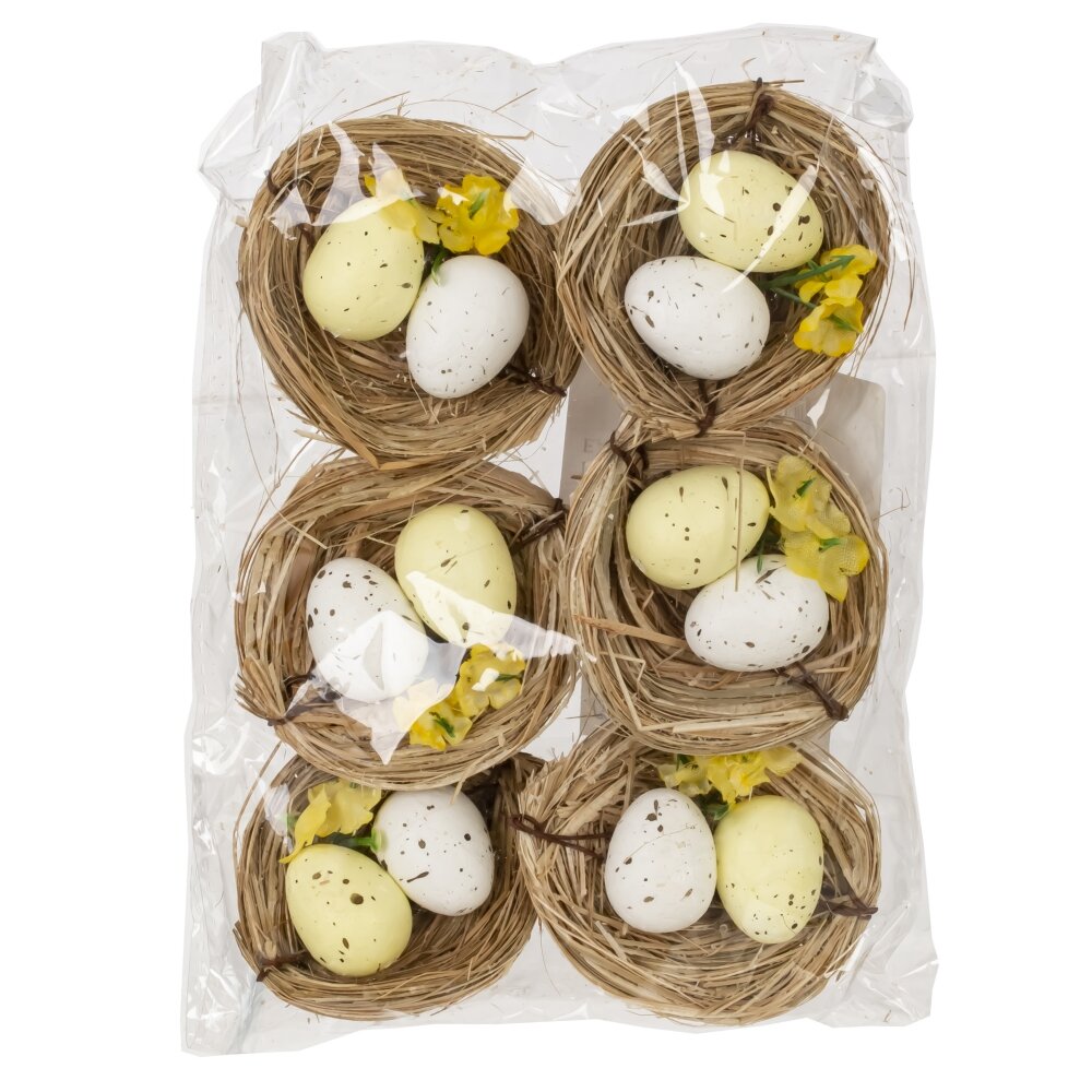 Набор из 6-ти изделий декоративных "Гнездо пасхальное" (6*4,5*2), L18 W12 H3 см