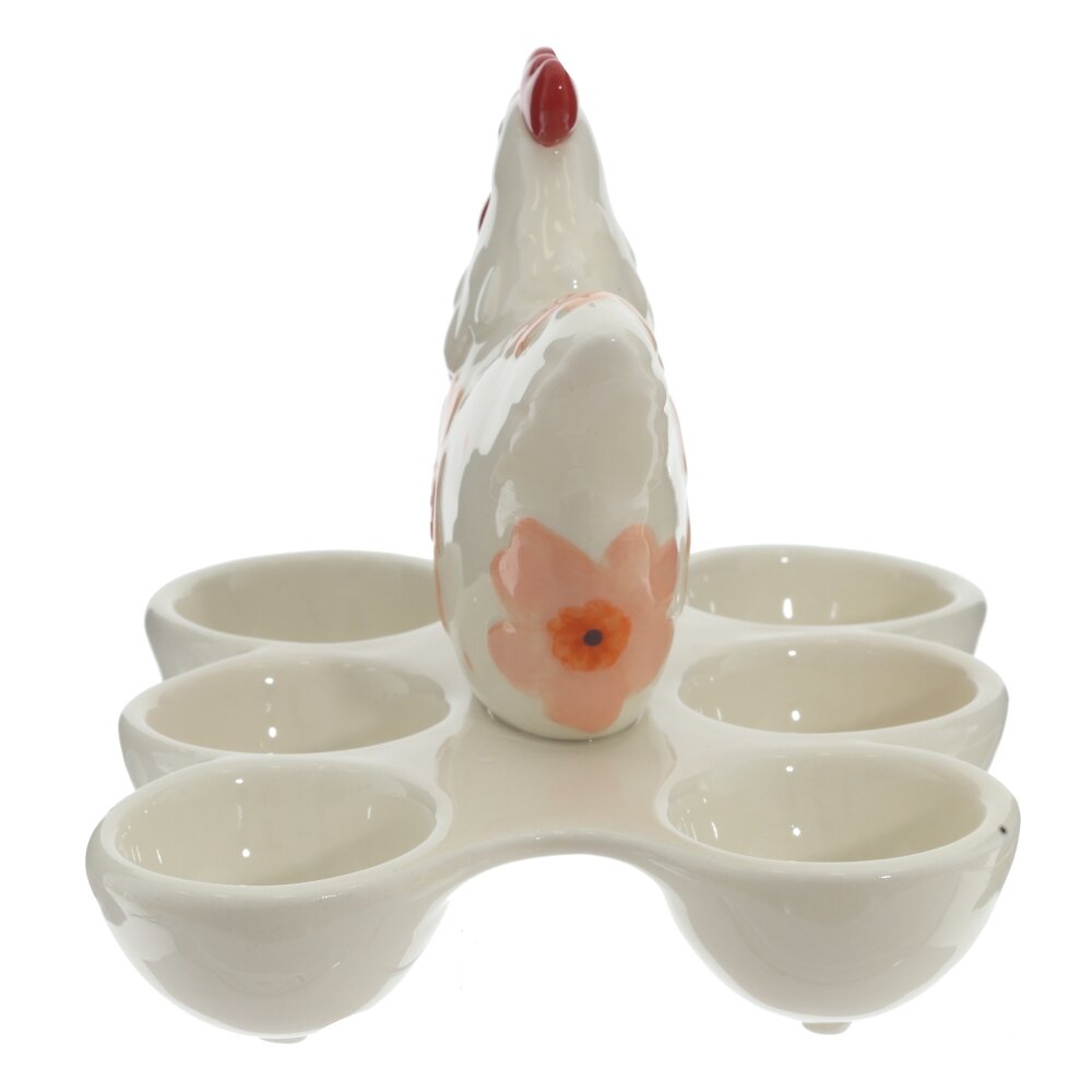 Праздничная подставка для яиц в виде очаровательной курочки станет ярким акцентом пасхального стола. Размер тарелки для яиц: высота с курочкой 12 см, длина 15 см, ширина 13 см. Подставка под яйца выполнена из качественной керамики с глянцевой глазурью и украшено нежными цветочными мотивами в пастельных тонах. Пасхальная тарелка рассчитана на размещение 6 яиц, что делает подставку удобной для сервировки завтрака или праздничного угощения. Устойчивое основание обеспечивает надежное положение на столе, а декоративная фигурка курочки добавит уюта и весеннего настроения в ваш дом. Подставка для яиц с пасхальной курочкой это отличный вариант как для семейного использования, так и в качестве оригинального подарка к Пасхе. Тарелку с курочкой можно подарить на день рождение или 8 марта, и она ни кого не оставит равнодушным.
