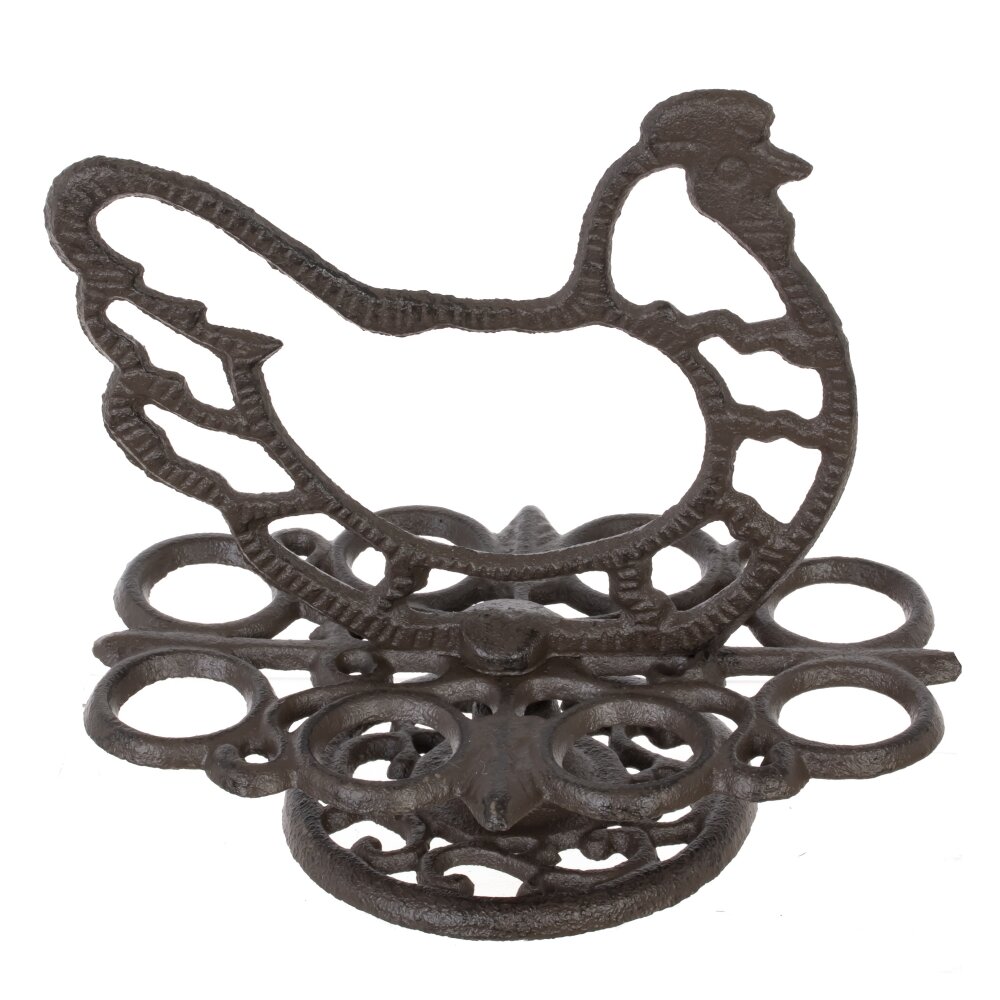 Пасхальная подставка для яиц в виде фигурки курочки станет выразительным акцентом вашего праздничного стола. Конструкция рассчитана на 8 яиц: аккуратные круглые отверстия надежно фиксируют как окрашенные, так и декоративные яйца, не давая им скатываться. Изделие выполнено из прочного металла (чугуна), поэтому отличается весом и устойчивостью, не переворачивается даже при случайном касании. Лаконичный ажурный узор и благородный темный оттенок легко сочетаются как с классическими, так и с современными сервировками. Подставка подходит для оформления пасхной трапезы, фотосессий, праздничных композиций с свечами и фигурками, а также станет оригинальным подарком к Пасхе для друзей и близких.