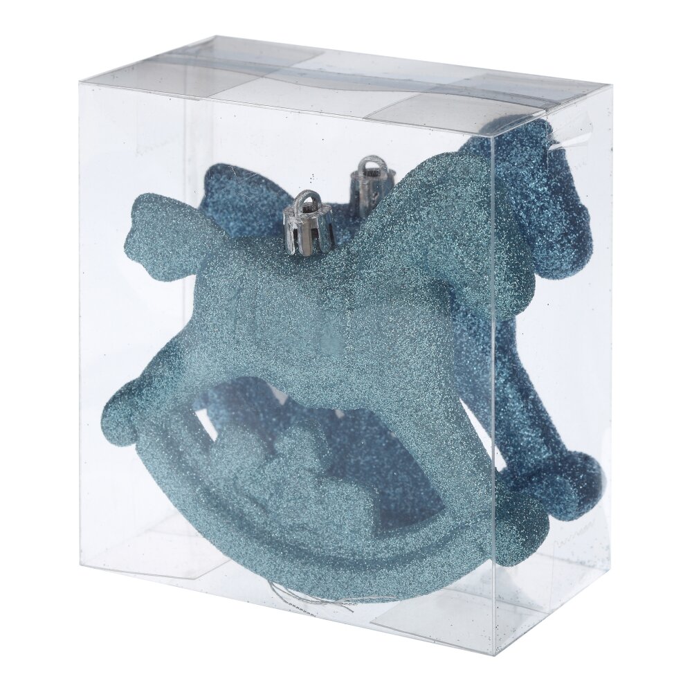 Набор из 2 новогодних украшений в виде "Лошадки". Идеально подходит для создания праздничной атмосферы в 2026 году, посвященного этой тематике. Изготовлено из прочных полимерных материалов, голубой цвет в сочетании с глиттером делает его захватывающим и элегантным. Отличный выбор для новогодних декораций, оформления интерьера и оригинальных подарков. Создайте волшебное настроение и добавьте очарования вашей новогодней вечеринки. Украшения станут прекрасным дополнением к праздничному декору, подчеркнут стиль и создадут атмосферу волшебства. Они могут использоваться для украшения елки или для создания тематических композиций.