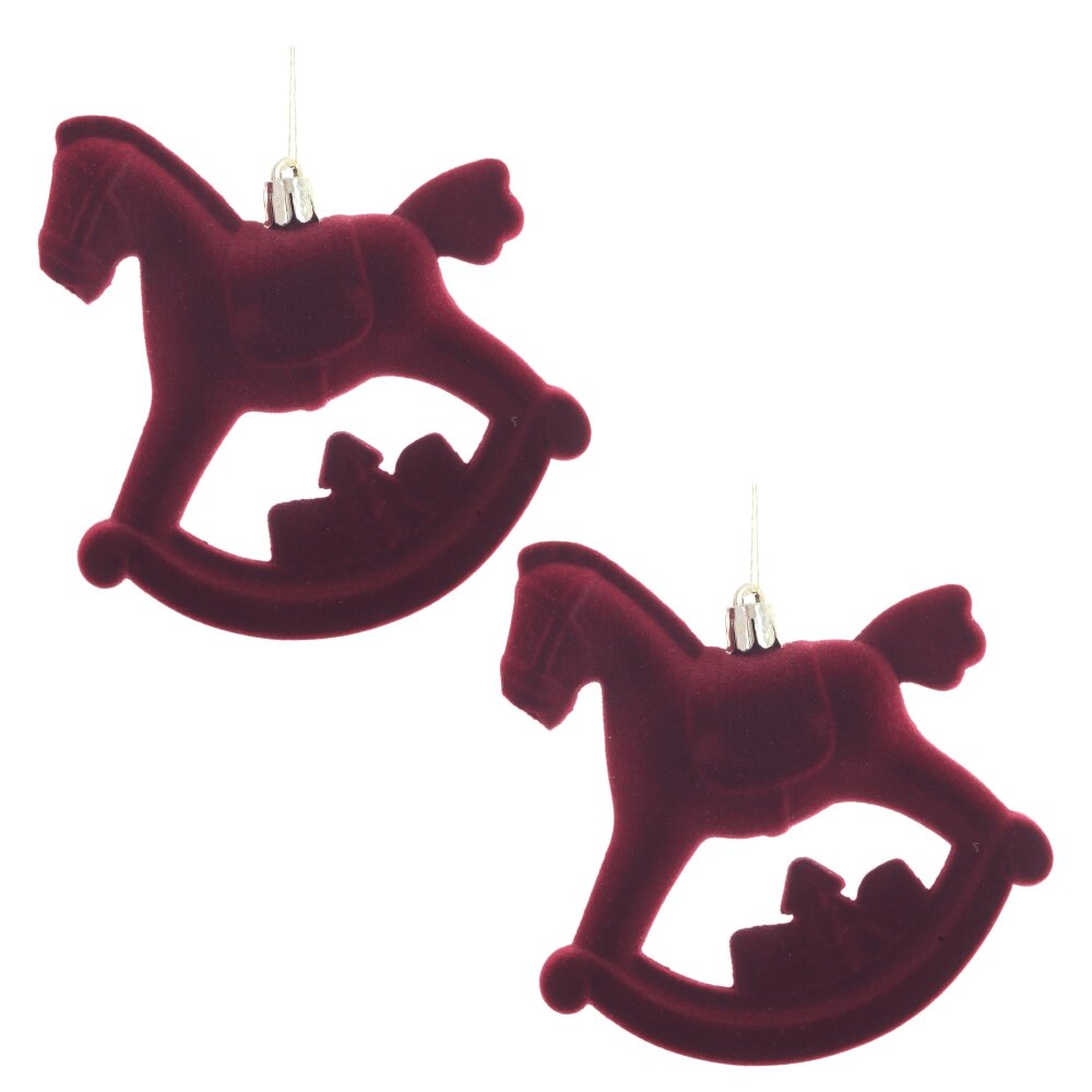 Набор из 2 новогодних украшений в виде "Лошадки". Идеально подходит для создания праздничной атмосферы в 2026 году, посвященного этой тематике. Изготовлено из прочных полимерных материалов, бордовый цвет в сочетании с бархатным покрытием делает его захватывающим и элегантным. Отличный выбор для новогодних декораций, оформления интерьера и оригинальных подарков. Создайте волшебное настроение и добавьте очарования вашей новогодней вечеринки. Украшения станут прекрасным дополнением к праздничному декору, подчеркнут стиль и создадут атмосферу волшебства. Они могут использоваться для украшения елки или для создания тематических композиций.