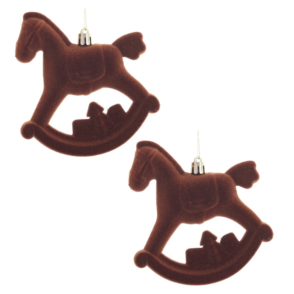 Набор из 2 новогодних украшений в виде "Лошадки". Идеально подходит для создания праздничной атмосферы в 2026 году, посвященного этой тематике. Изготовлено из прочных полимерных материалов, шоколадный цвет в сочетании с бархатным покрытием делает его захватывающим и элегантным. Отличный выбор для новогодних декораций, оформления интерьера и оригинальных подарков. Создайте волшебное настроение и добавьте очарования вашей новогодней вечеринки. Украшения станут прекрасным дополнением к праздничному декору, подчеркнут стиль и создадут атмосферу волшебства. Они могут использоваться для украшения елки или для создания тематических композиций.