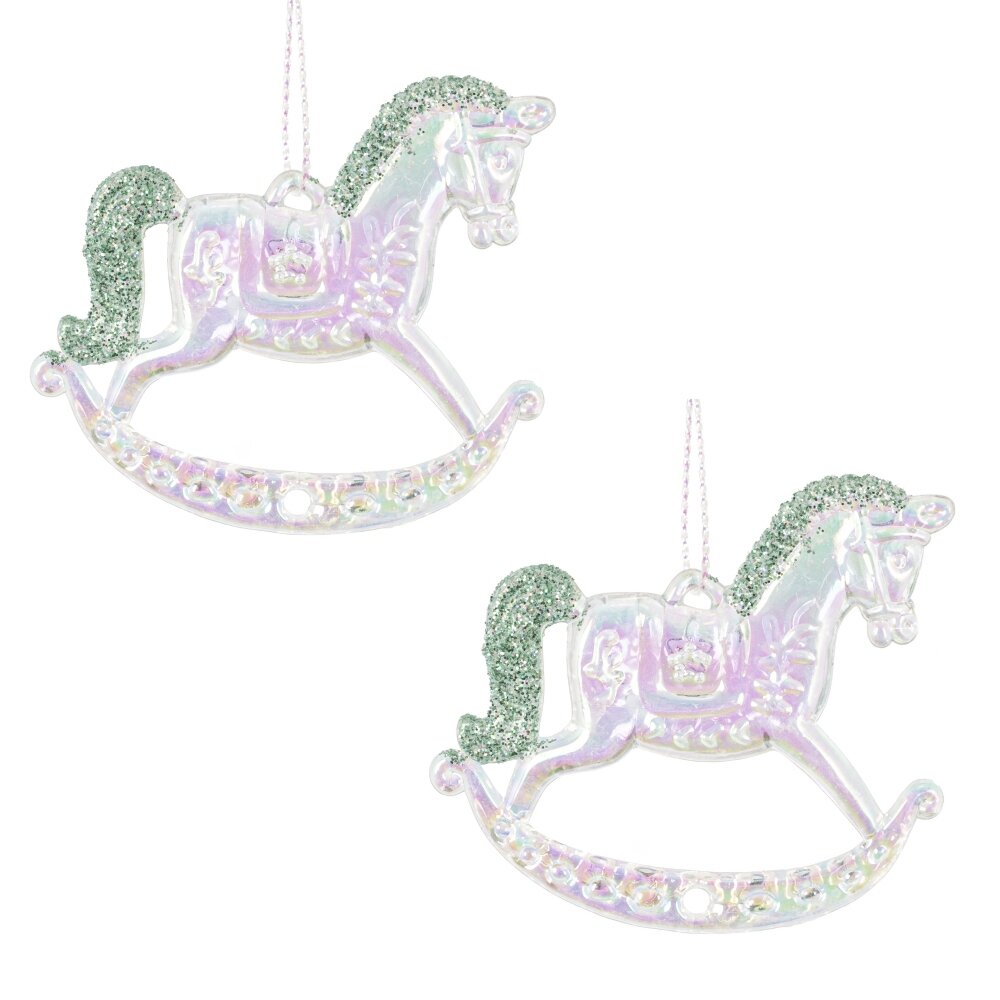 Новогоднее украшение "Лошадка" — это изящный набор из двух прозрачных фигурок лошадок-качалок, изготовленных из полиакрила. Каждая лошадка имеет перламутровый перелив. Грива и хвост окрашены глиттером. Эти очаровательные украшения прекрасно дополнят небольшую елочку или украсят окно, добавляя атмосферу праздника и волшебства в ваш дом. Мягкий свет, проходящий сквозь прозрачные украшения, создаст уютное и сказочное настроение в новогоднюю ночь.