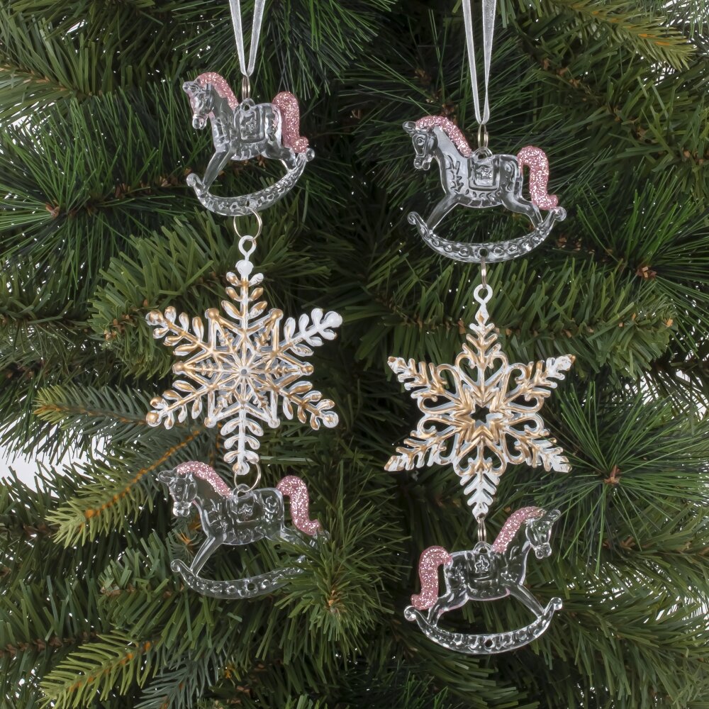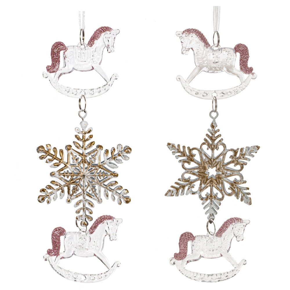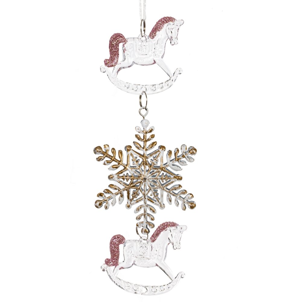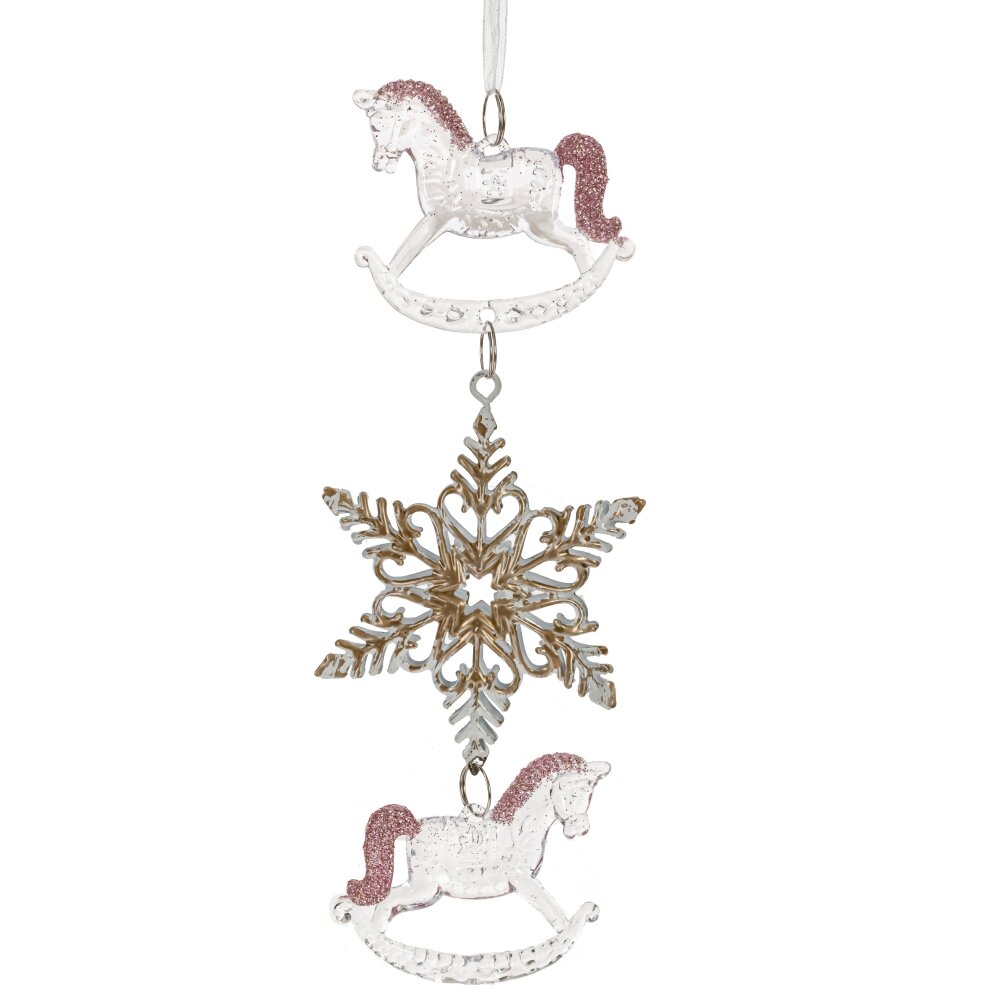 Украшение новогоднеe подвеска"Снежинка с лошадками", L6,5 W1 H19 см, 2в.