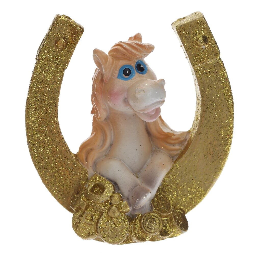 Декоративная фигурка "Лошадка с подковой" — стильный и символичный элемент декора, который станет прекрасным подарком к Новому году или талисманом на удачу. Выполненная из прочного полимерного материала, фигурка символизирует энергию, силу и процветание. Лошадка с подковой традиционно ассоциируется с удачей и успехом в делах. Идеально подойдёт для оформления интерьера дома или офиса, а также станет оригинальным дополнением к новогодней композиции. Этот стильный сувенир будет радовать вас и ваших близких весь год. Фигурка представлена в 4-х видах.