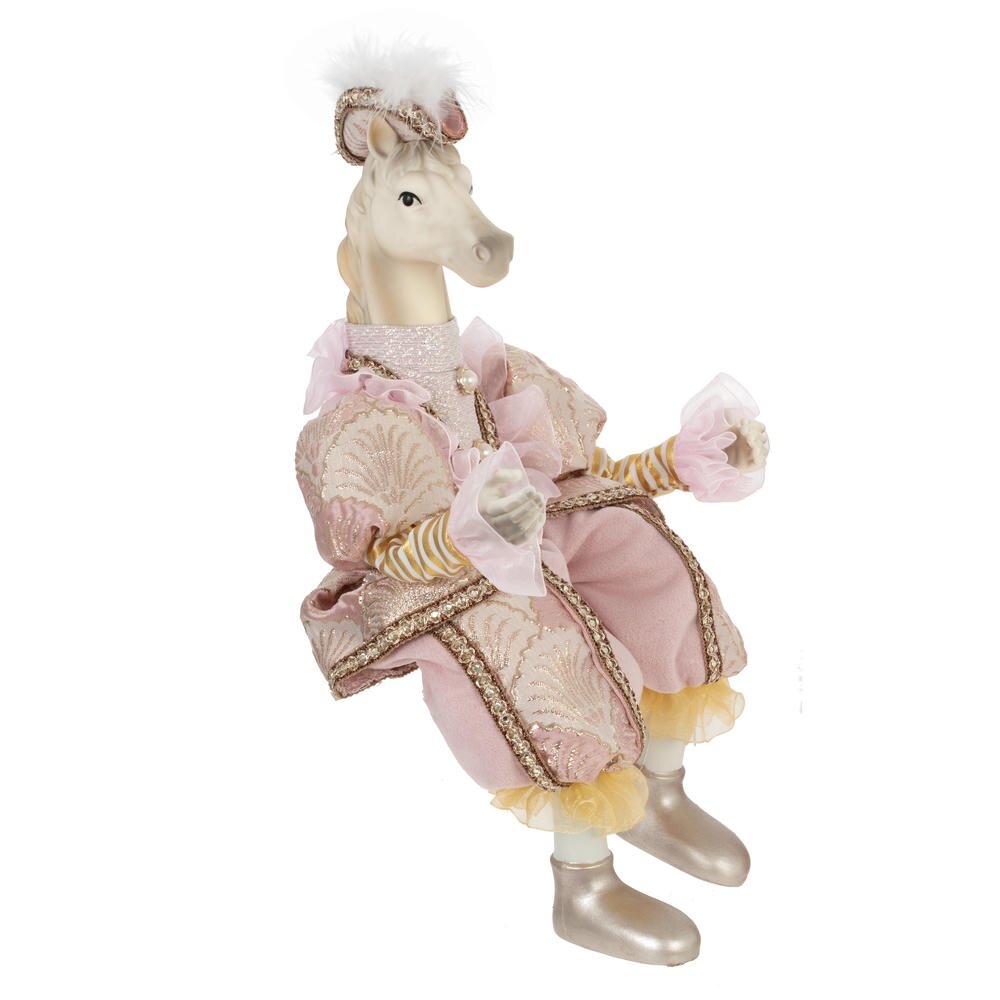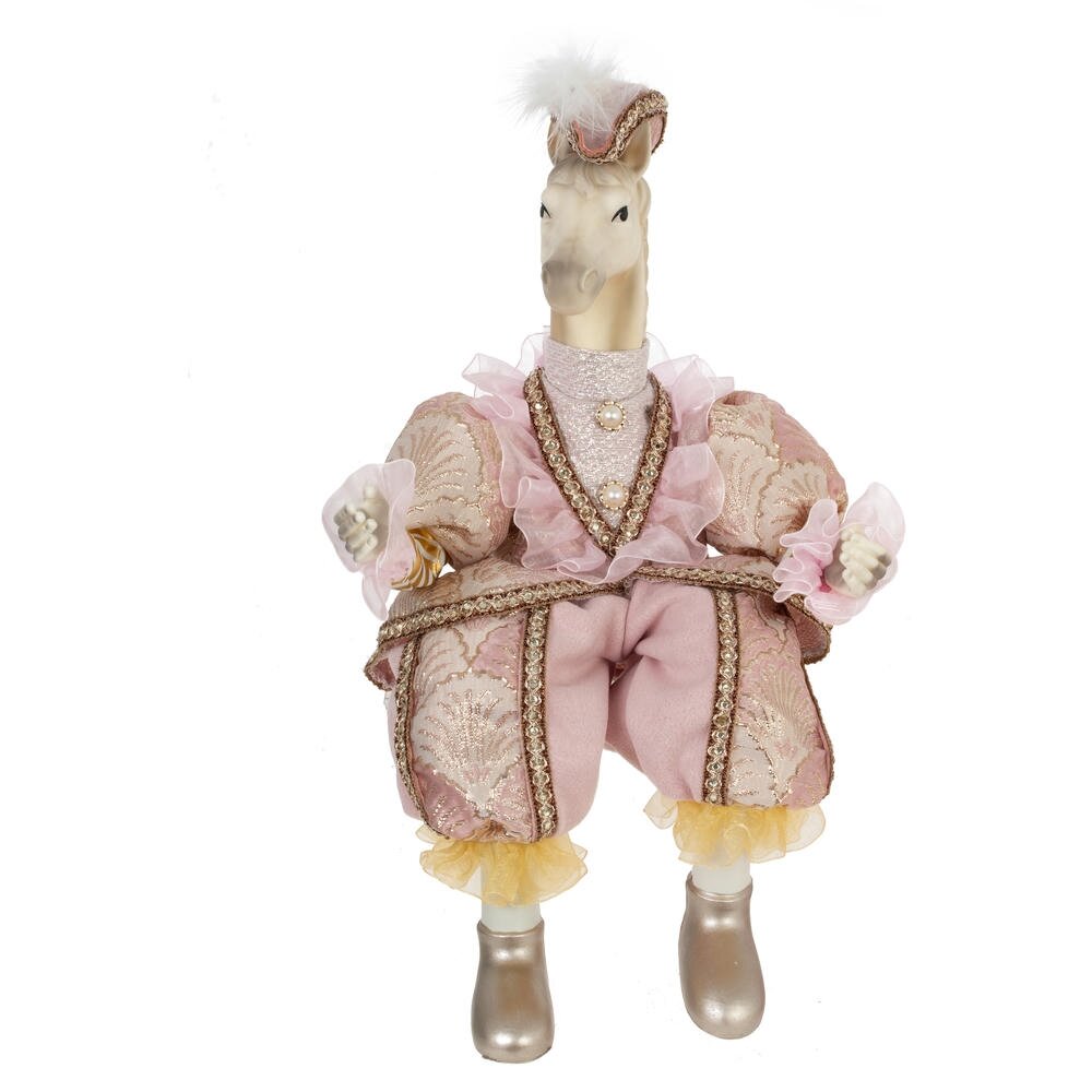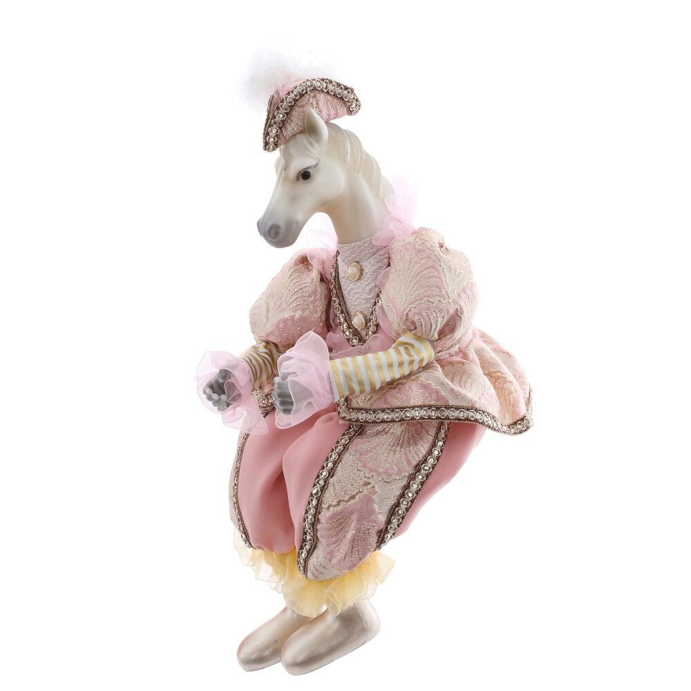 Набивная игрушка с подвесом  "Лошадь" в придворном  костюме  — изящный и необычный элемент новогоднего или интерьерного декора. Мягкая фигурка лошади выполнена с особым вниманием к деталям: роскошный костюм из блестящей ткани придаёт образу торжественность и сказочность. Игрушка создаёт атмосферу уюта и волшебства, отлично смотрится под ёлкой, на полке или в композиции с другими праздничными аксессуарами. Благодаря удобной петельке, изделие можно подвесить , например, на ёлку.Подойдёт как украшение, сувенир или оригинальный подарок.Стоит отметить, что голова игрушки выполнена из пластмассы, что делает изделие более легким, чем другие полимерные материалы.