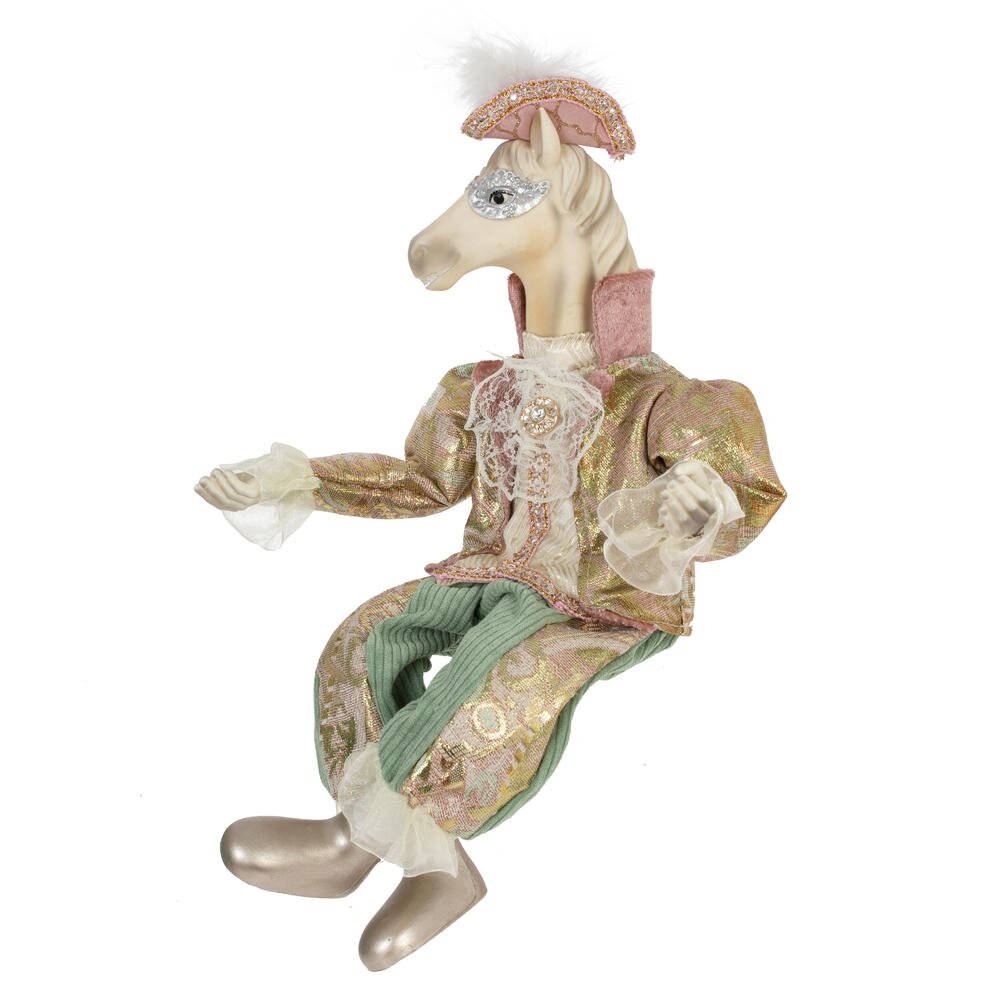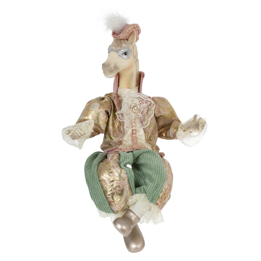 Набивная игрушка с подвесом  "Лошадь" в придворном  костюме  — изящный и необычный элемент новогоднего или интерьерного декора. Мягкая фигурка лошади выполнена с особым вниманием к деталям: роскошный костюм из блестящей ткани придаёт образу торжественность и сказочность. Игрушка создаёт атмосферу уюта и волшебства, отлично смотрится под ёлкой, на полке или в композиции с другими праздничными аксессуарами. Благодаря удобной петельке, изделие можно подвесить , например, на ёлку.Подойдёт как украшение, сувенир или оригинальный подарок.Стоит отметить, что голова игрушки выполнена из пластмассы, что делает изделие более легким, чем другие полимерные материалы.