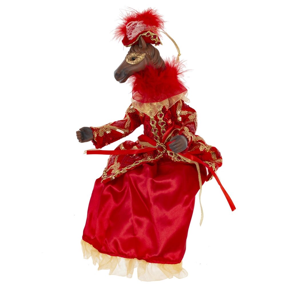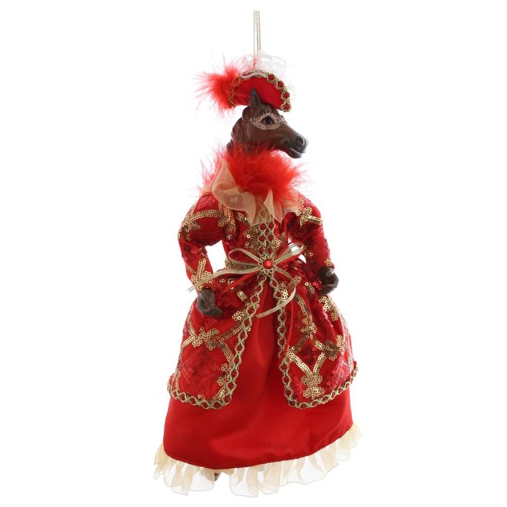 Набивная игрушка с подвесом "Лошадь" в придворном платье — изящный и необычный элемент новогоднего или интерьерного декора. Мягкая фигурка лошади выполнена с особым вниманием к деталям: роскошное платье из блестящей ткани придаёт образу торжественность и сказочность. Игрушка создаёт атмосферу уюта и волшебства, отлично смотрится под ёлкой, на полке или в композиции с другими праздничными аксессуарами. Благодаря удобной петельке, изделие можно подвесить , например, на ёлку.Подойдёт как украшение, сувенир или оригинальный подарок.Стоит отметить, что голова игрушки выполнена из пластмассы, что делает изделие более легким, чем другие полимерные материалы.
