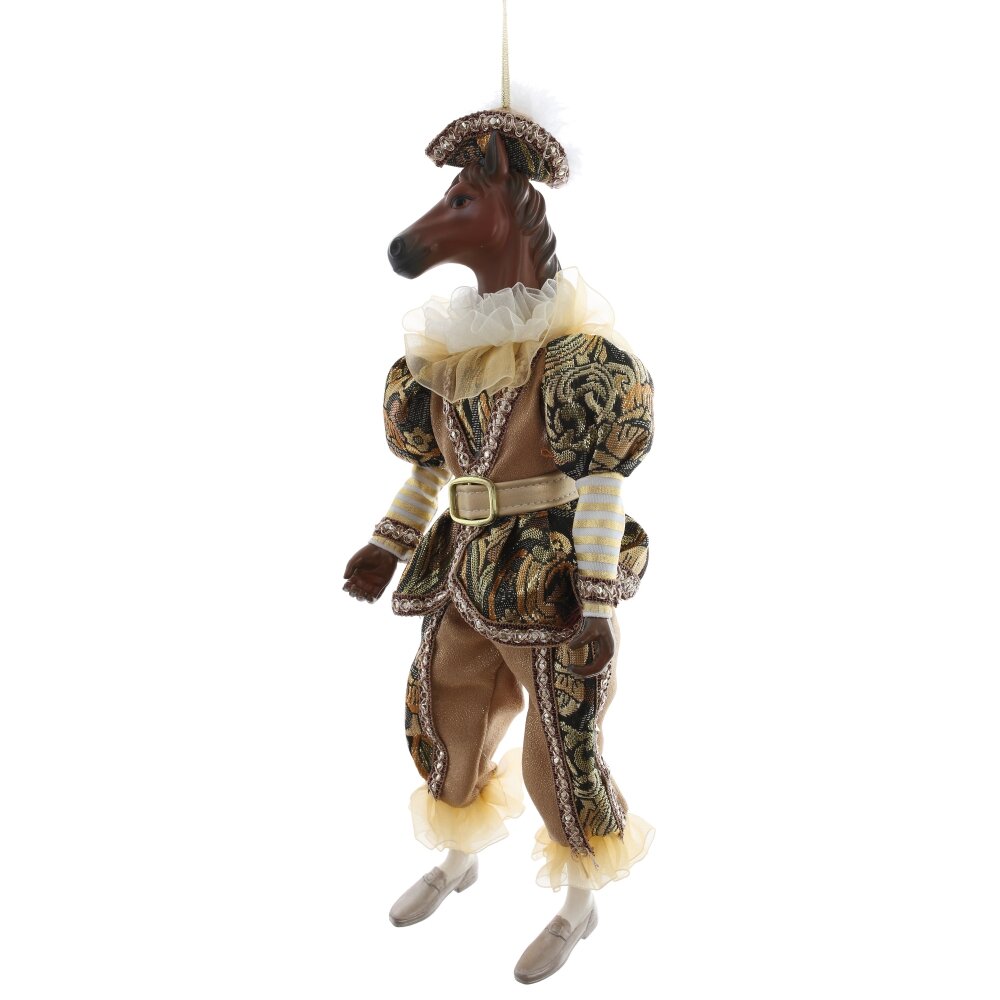 Рабивная игрушка с подвесом  "Лошадь" в придворном  костюме  — изящный и необычный элемент новогоднего или интерьерного декора. Мягкая фигурка лошади выполнена с особым вниманием к деталям: роскошный костюм из блестящей ткани придаёт образу торжественность и сказочность. Игрушка создаёт атмосферу уюта и волшебства, отлично смотрится под ёлкой, на полке или в композиции с другими праздничными аксессуарами. Благодаря удобной петельке, изделие можно подвесить , например, на ёлку.Подойдёт как украшение, сувенир или оригинальный подарок.Стоит отметить, что голова игрушки выполнена из пластмассы, что делает изделие более легким, чем другие полимерные материалы.