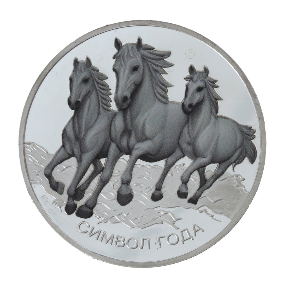 Подарочная монета с изображением символа 2026 года — грациозной лошади — станет отличным сувениром и памятным подарком. Изготовленная из металла с покрытием под серебро, она выглядит стильно и благородно. Лошадь, символ энергии, стремительности и удачи, изображена с высокой детализацией, что придаёт монете художественную ценность. Гладкий блеск серебряного покрытия подчёркивает её изысканность и делает изделие особенно привлекательным для коллекционеров и ценителей символических подарков. Такая монета станет не только красивым украшением, но и талисманом, приносящим успех в новом 2026 году.