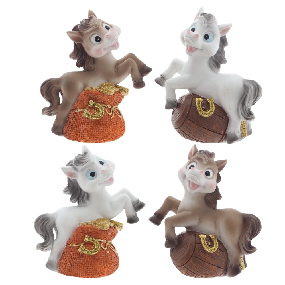 Декоративная фигурка "Лошадка с подковой" — стильный и символичный элемент декора, который станет прекрасным подарком к Новому году или талисманом на удачу. Выполненная из прочного полимерного материала, фигурка символизирует энергию, силу и процветание. Лошадка с подковой традиционно ассоциируется с удачей и успехом в делах. Идеально подойдёт для оформления интерьера дома или офиса, а также станет оригинальным дополнением к новогодней композиции. Этот стильный сувенир будет радовать вас и ваших близких весь год. Фигурка представлена в 4-х видах.