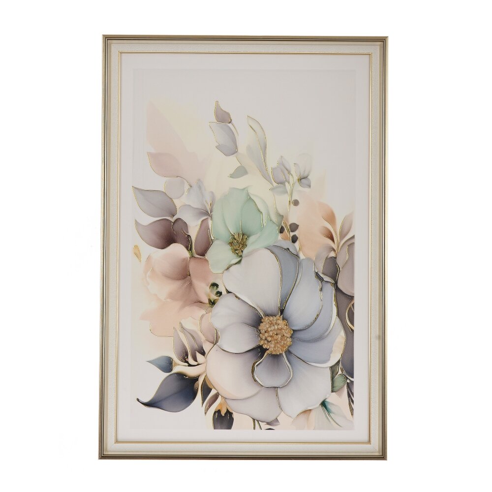 Элегантное настенное панно с объемным цветочным рисунком станет изысканным акцентом в вашем интерьере. Нежные бутоны в пастельных оттенках голубого, бежевого и сиреневого плавно переходят друг в друга, создавая ощущение легкости и воздушности. Тонкий золотистый контур подчеркивает форму лепестков и придаёт композиции утончённый блеск. Стильная рама нейтрального светлого цвета гармонично обрамляет изображение и позволяет легко вписать панно как в классический, так и в современный интерьер гостиной, спальни или прихожей. Идеально подходит для подарка и ежедневного эстетического удовольствия.