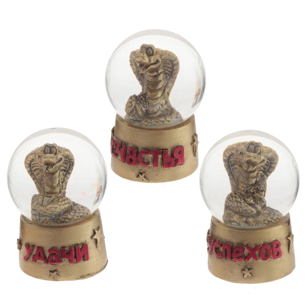 Декоративный стеклянный водяной шар с символом года — змеей — представляет собой удивительный новогодний сувенир, который украсит любой праздник. Внутри шара расположена змея-кобра из полистоуна, выполненная в элегантном золотом цвете. Она уверенно располагается на подставке, украшенной пожеланием, которое добавляет изделию особый шарм. Сверкающий глиттер внутри шара создает завораживающий визуальный эффект при каждом встряхивании. Шар представлен в трех вариантах с надписями: "Удачи", "Счастья", "Успехов", что делает его уникальным и подходящим подарком для близких и друзей в наступающем году Змеи. Обратите внимание, что для сохранения качества поделки рекомендуется осуществлять её отгрузку при температуре выше 0°С.