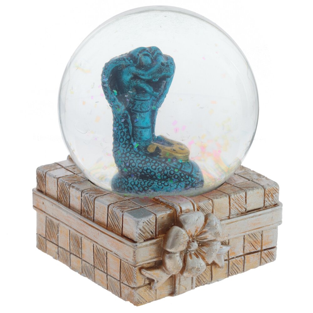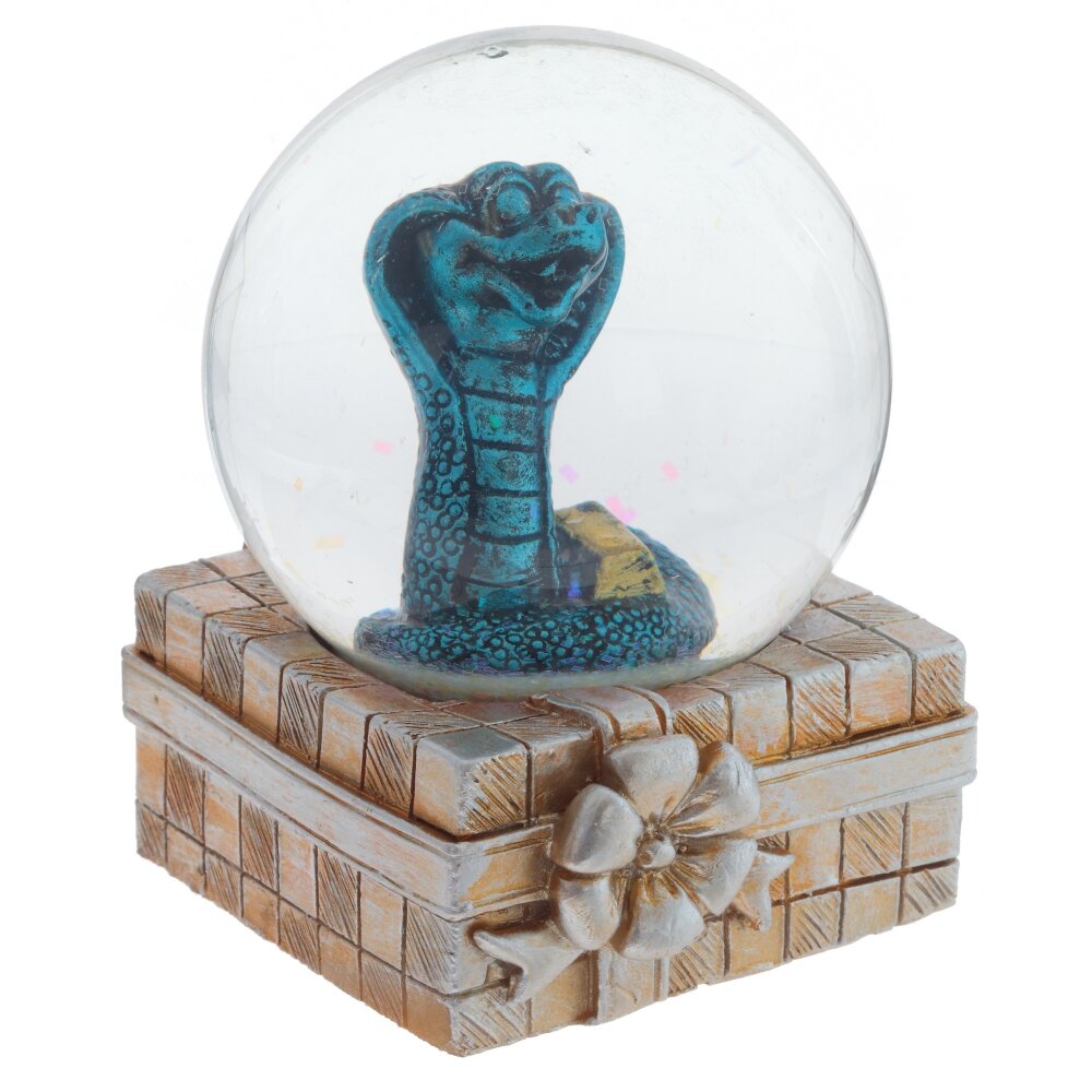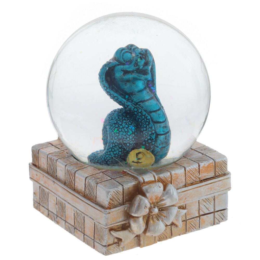 Декоративный стеклянный водяной шар с символом года - змеей, это удивительный новогодний сувенир. Змея-кобра из полистоуна в синем металлическом цвете размещена на праздничной подставке в шаре диаметром 6 см. Глицериновая жидкость внутри шара содержит блестящий глиттер, создавая впечатляющий эффект при каждом встряхивании. Этот шар представлен в трех вариантах, вы можете выбрать подходящий для себя и ваших близких в подарок. Обратите внимание на температурный режим отгрузки выше 0°С
