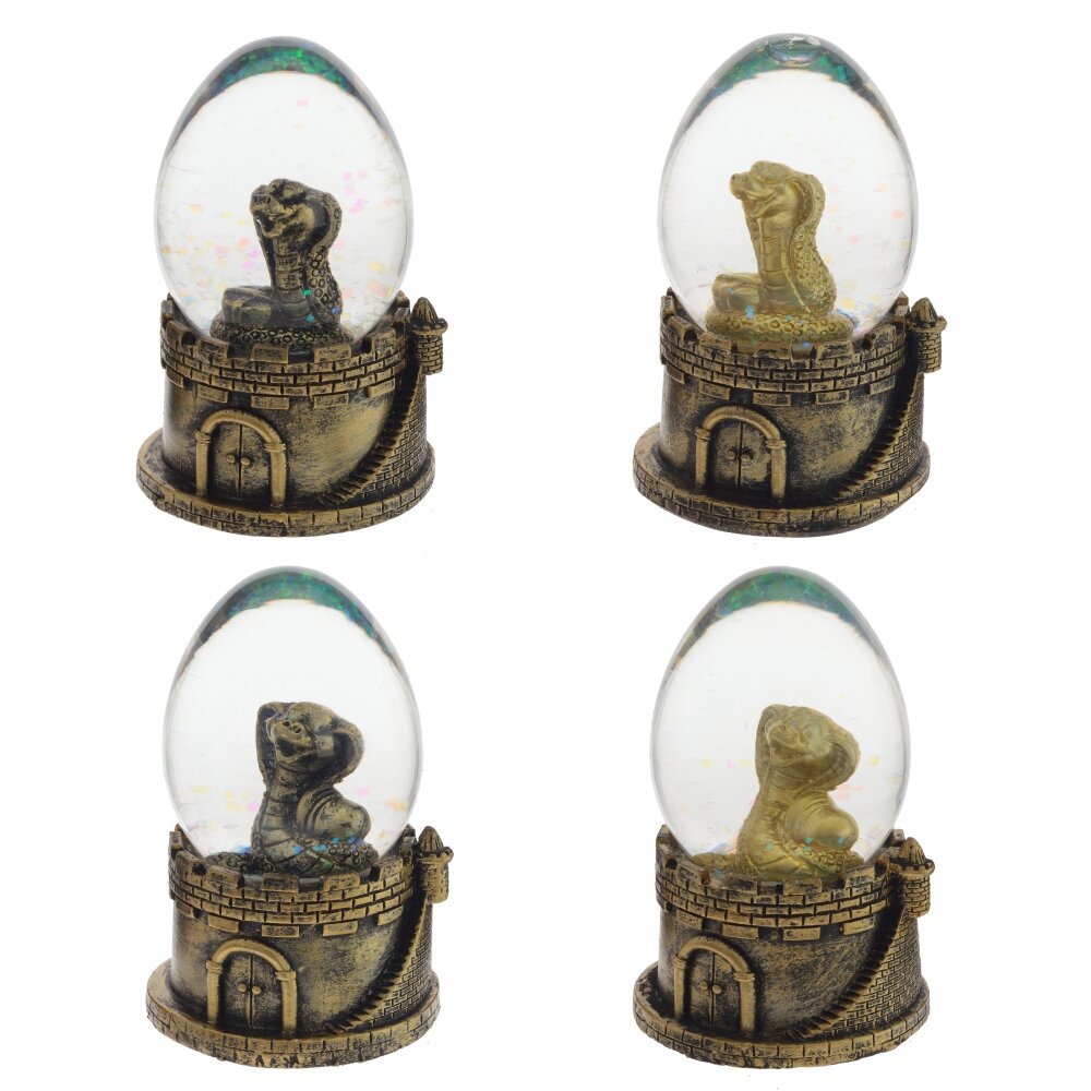Декоративный стеклянный водяной шар "Змея" - великолепный новогодний сувенир. Золотая фигурка змеи-кобры из полистоуна размещается на красивой подставке в виде старинной башни. Внутри стеклянного шара в форме яйца плавают блестки в глицериновой жидкости, создавая волшебный вихрь при встряхивании. Этот уникальный шар доступен в четырех вариантах, что позволяет выбрать идеальный вариант для подарка. Пусть этот изысканный сувенир станет ярким символом года и принесет в дом уюта и волшебства в наступающий праздничный сезон. Обратите внимание на температурный режим отгрузки выше 0°С