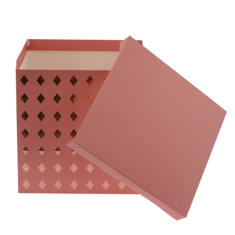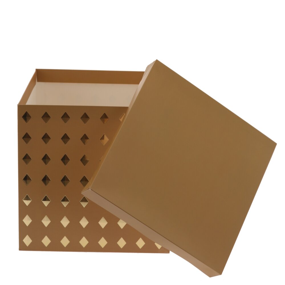 Стильная подарочная коробка из плотной бумаги 350 г/м? станет идеальным оформлением для любого сюрприза. Классическая кубическая форма и лаконичный цвет дополняется изысканным декором в виде мерцающих ромбов, которые красиво переливаются при освещении. Жёсткие стенки и плотная крышка надежно сохраняют форму и защищают содержимое во время дарения и транспортировки. Коробка подходит для упаковки одежды, аксессуаров, косметики, текстиля, сувениров и сладостей, а после праздника может использоваться для аккуратного хранения самых разных мелочей дома или в офисе. Представлено в четырех вариантах.