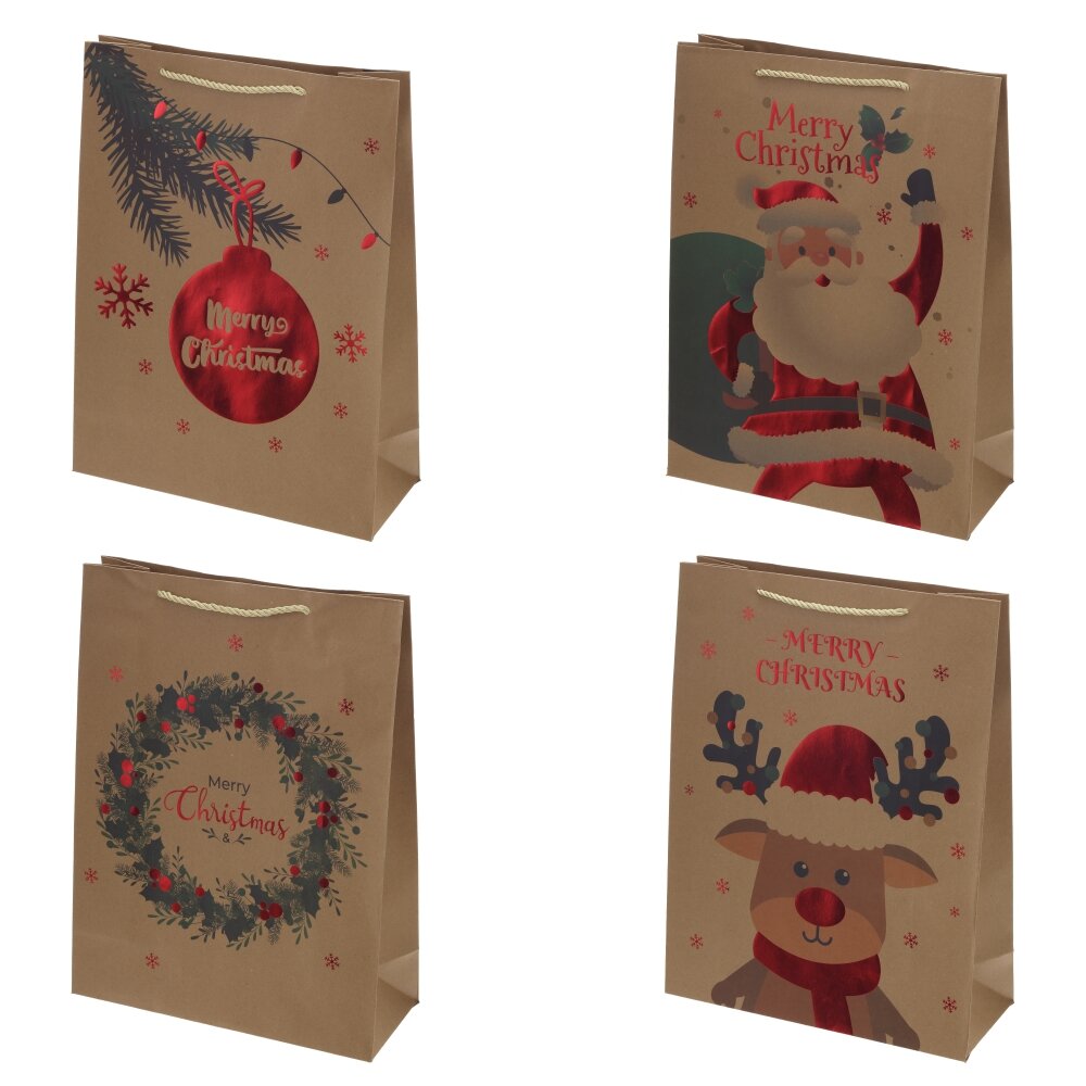 Пакет подарочный L (бумага 210г/м2, блок 12шт), L30 W12 H40 см, 4в.
