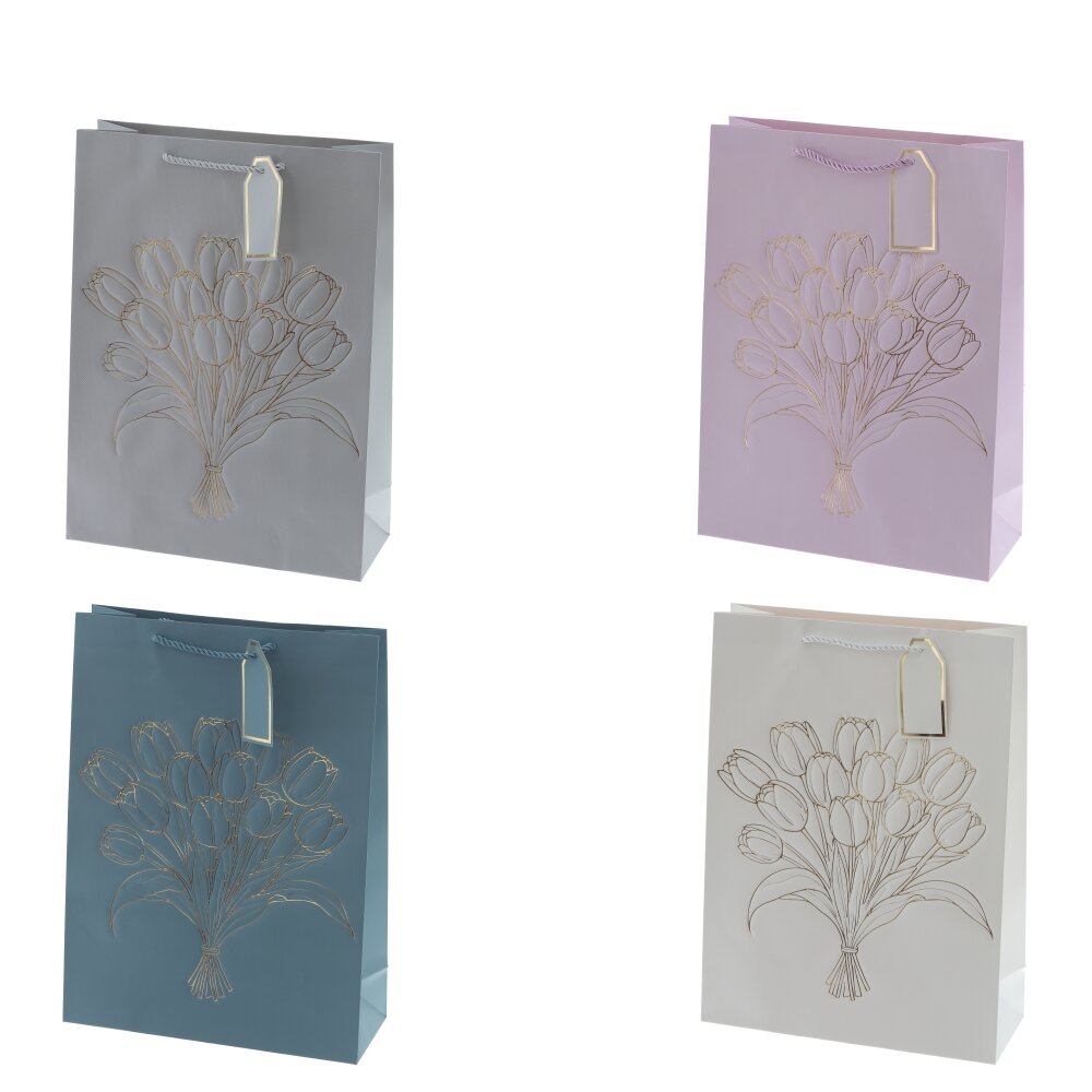 Пакет подарочный L (бумага 210г/м2, блок 12шт), L31 W12 H42 см, 4в.