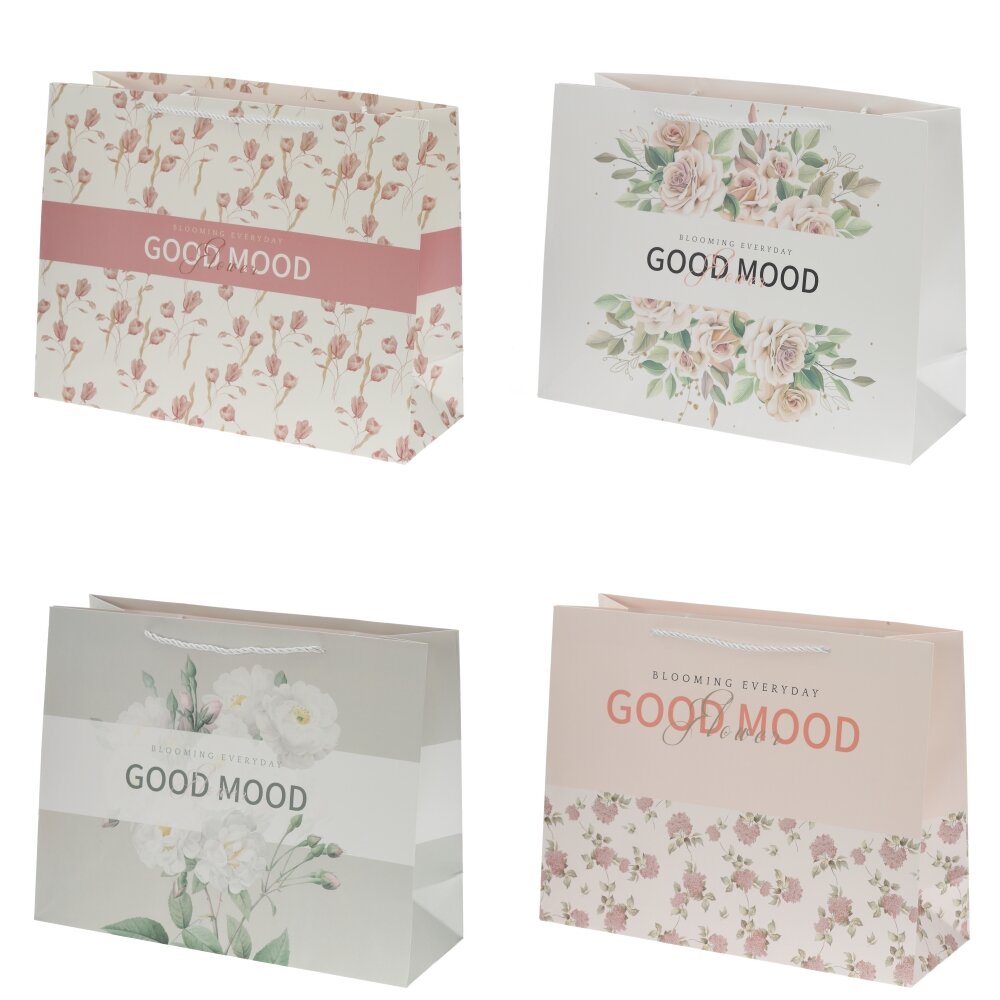 Пакет подарочный L (бумага 250г/м2, блок 12шт), L42 W15 H33 см, 4в.