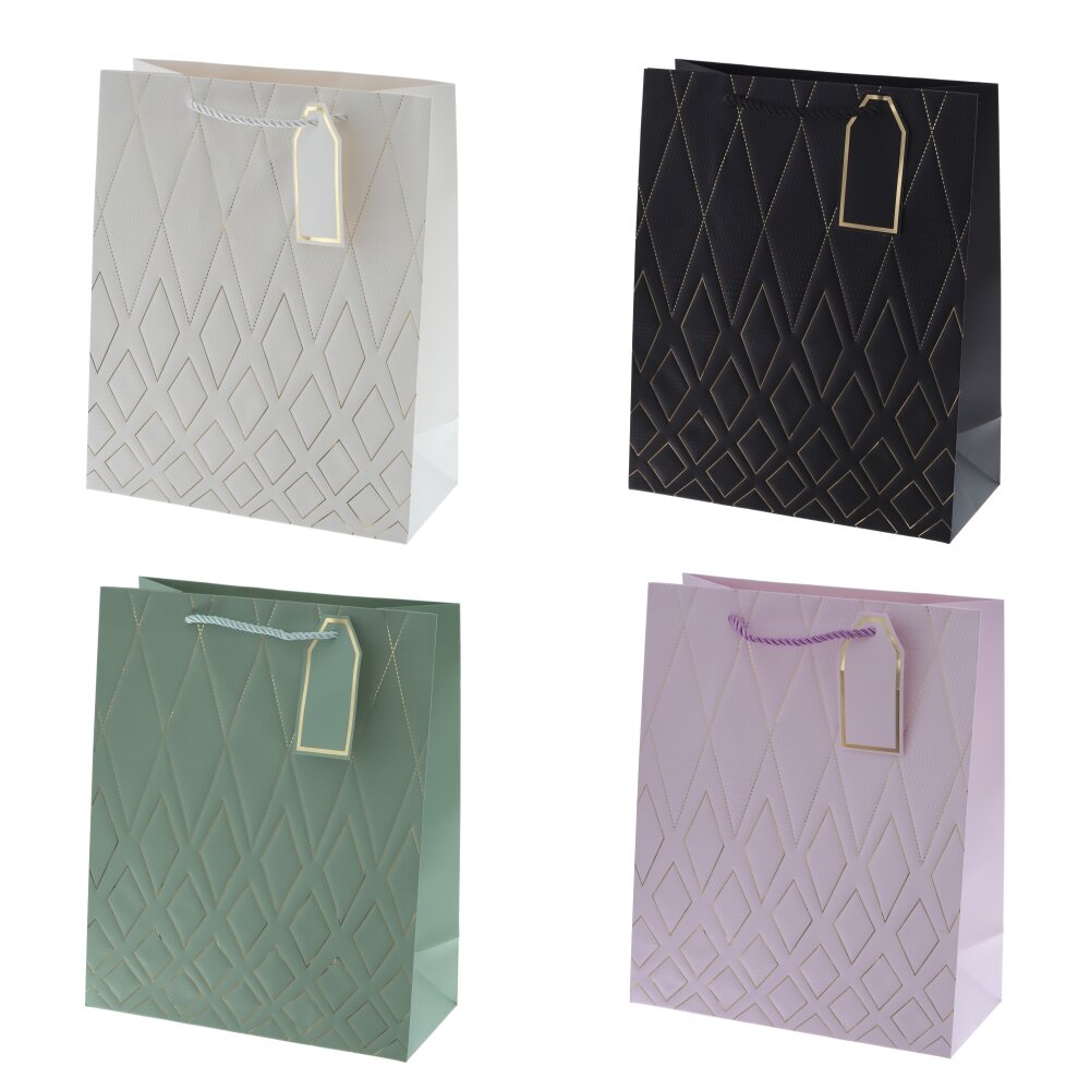 Пакет подарочный M (бумага 210г/м2, блок 12шт), L26 W12 H32 см, 4в.