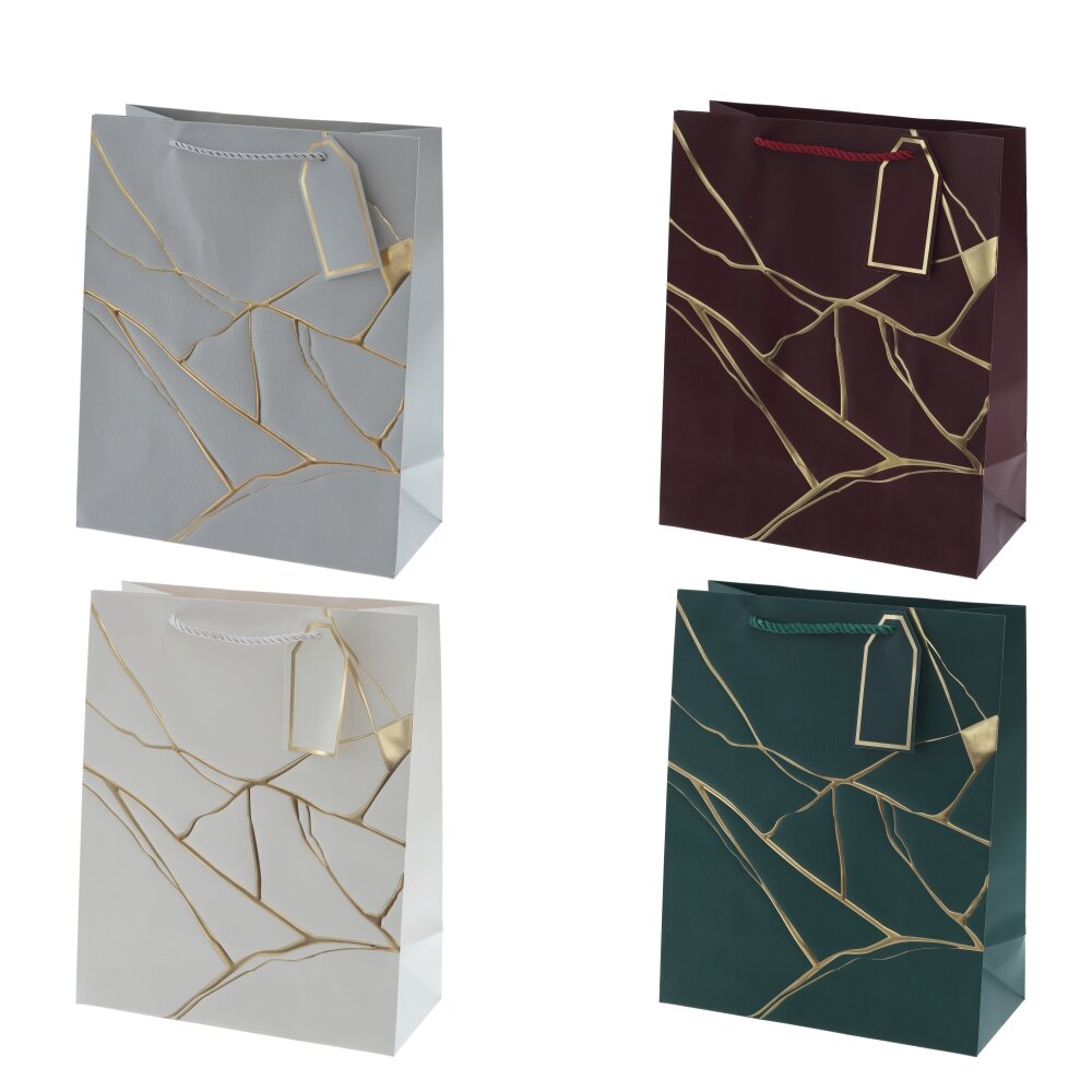 Пакет подарочный M (бумага 210г/м2, блок 12шт), L26 W12 H32 см, 4в.