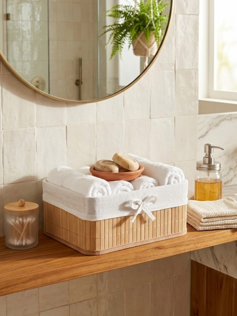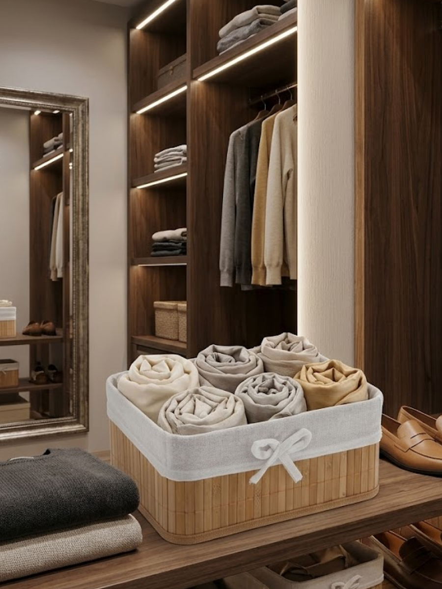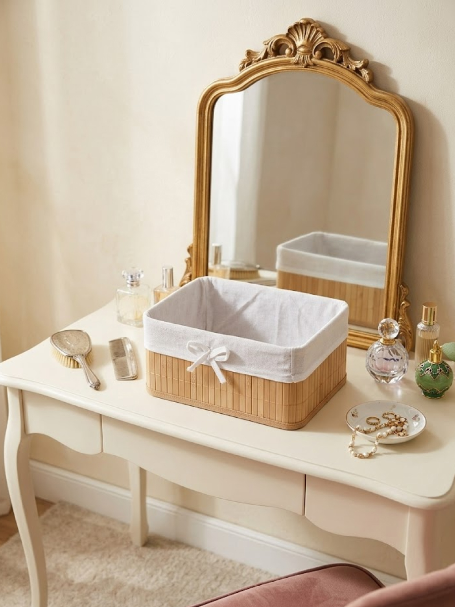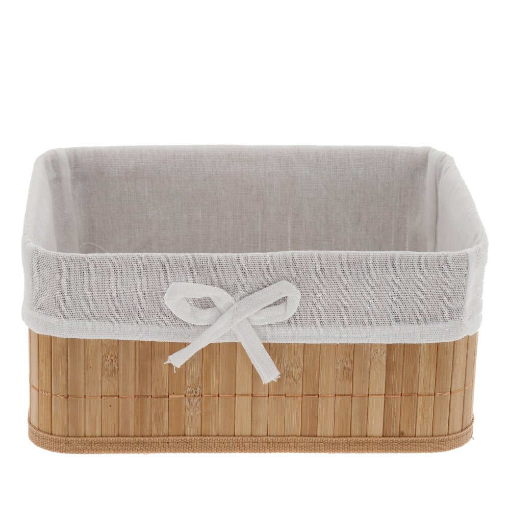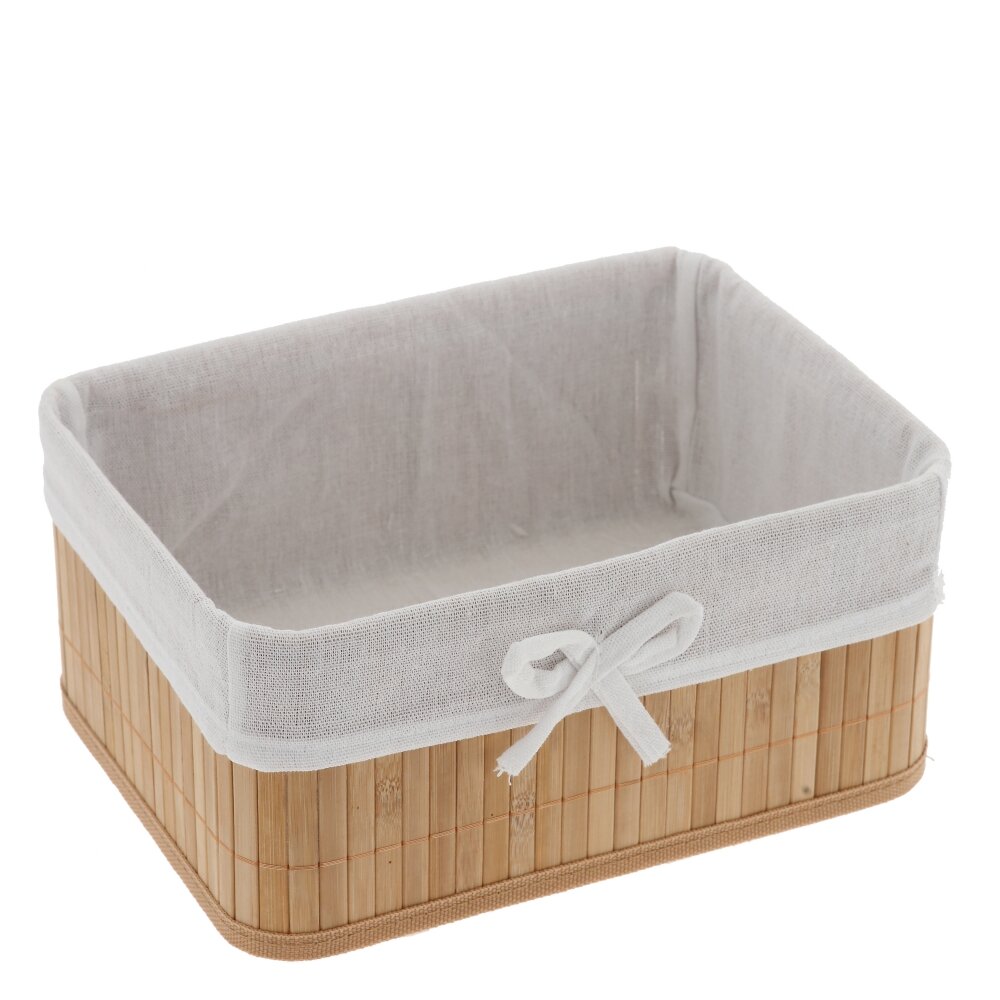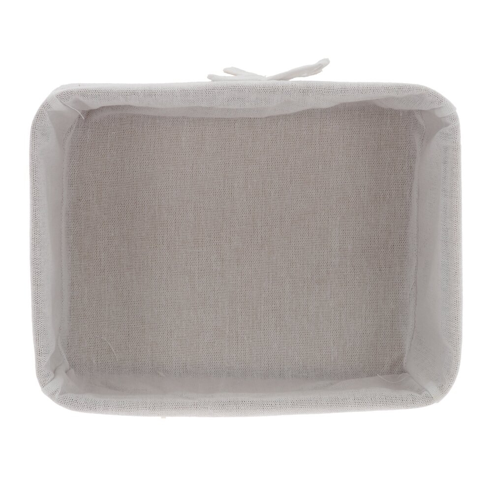Прямоугольная плетёная корзина с текстильной вставкой – стильное и практичное решение для хранения мелочей в доме. Основание выполнено из прочного натурального материала в бежево?коричневых тонах. Внутри – съёмный тканевый чехол , который легко стирать и очищать. Корзина подойдёт для хранения косметики, аксессуаров, канцелярии, кухонных принадлежностей, а также идеально смотрится в ванной, спальне или на полке в прихожей, добавляя интерьеру уют и порядок.