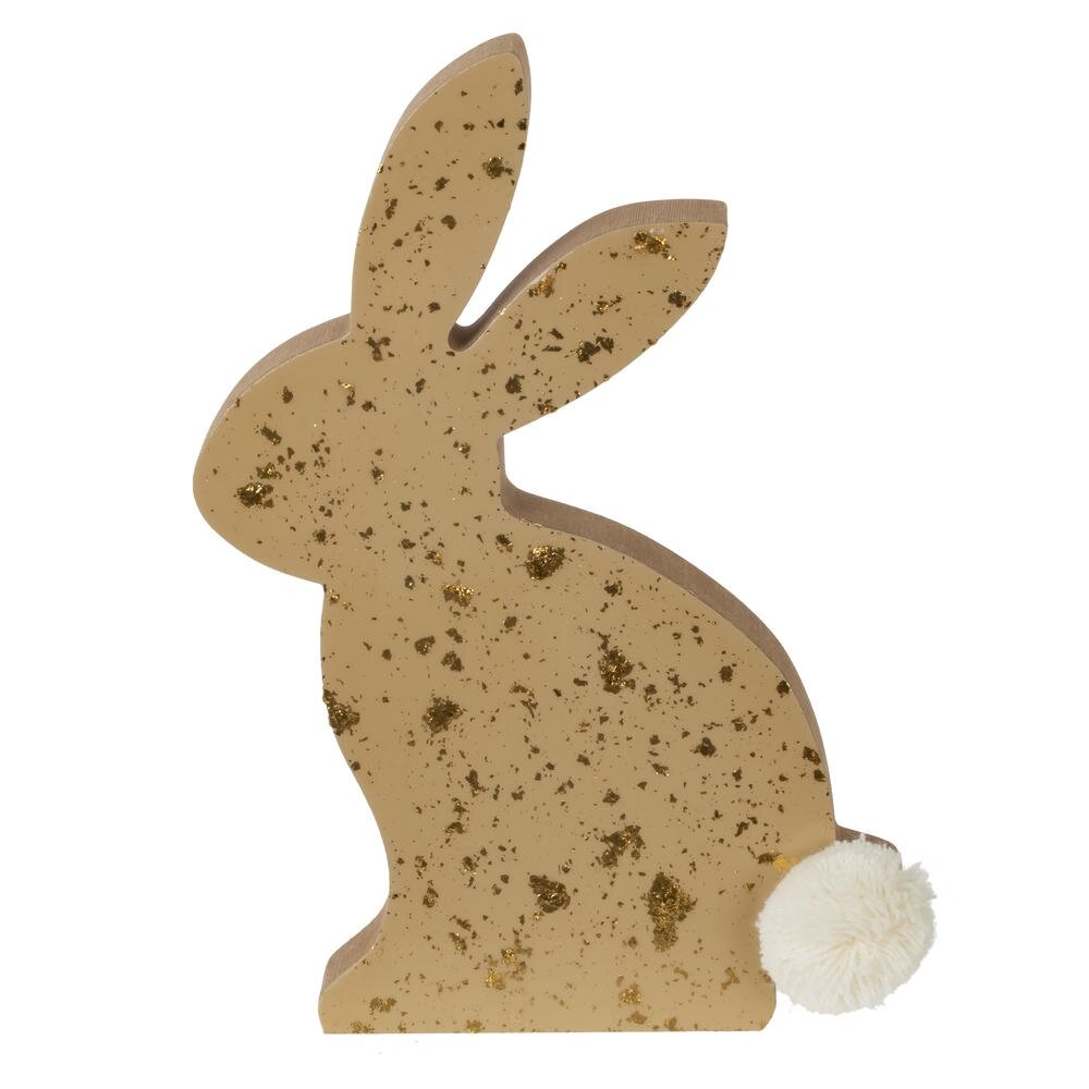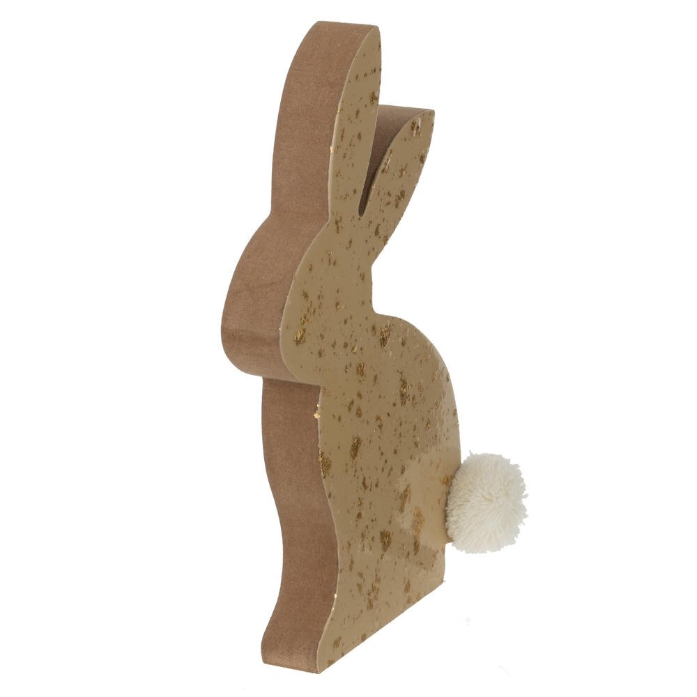 Декоративная фигурка «Пасхальный зайчик» станет нежным акцентом в праздничном оформлении дома. Силуэт зайца выполнен из дерева и окрашен в мягкий бежевый оттенок с эффектом золотых брызг, создающих легкое мерцание при дневном и искусственном освещении. Забавный хвостик из мягкого помпона придаёт изделию уют и подчёркивает пасхальное настроение. Фигурка устойчиво стоит на горизонтальной поверхности, её удобно разместить на подоконнике, каминной полке, журнальном столике или в детской. Идеально сочетается с пасхальными венками, свечами и сервировкой стола, а также подойдёт в качестве небольшого душевного подарка.